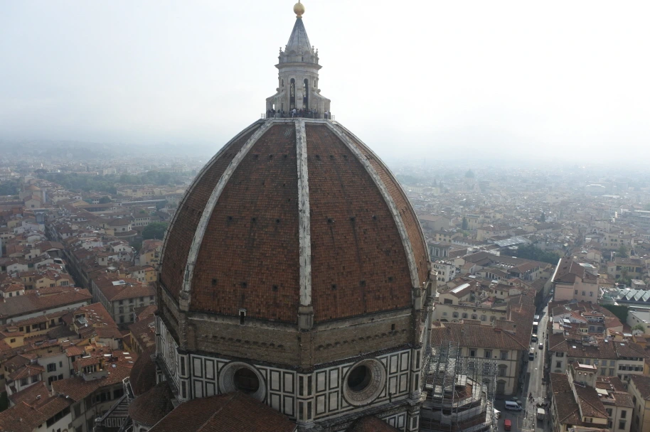 피렌체 어느 골목에서도 올려다 보이는 반원형의 지붕 큐폴라(cupola)에 오르면 반대로 피렌체 어느 골목도 훤히 내려다볼 수 있다. 피렌체 역사지구에서 두오모는 도시의 구심점이며 모두가 지향하는 천국으로 안내하는 성소였다.