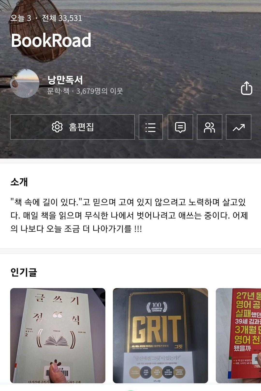 하루하루 할 일이 너무나 많고 거기에서 소통하는 기쁨과 차곡차곡 나의 주옥같은 글이 쌓이는 (내 생각에는 ㅋㅋ) 즐거움을 알게 될 것이다.