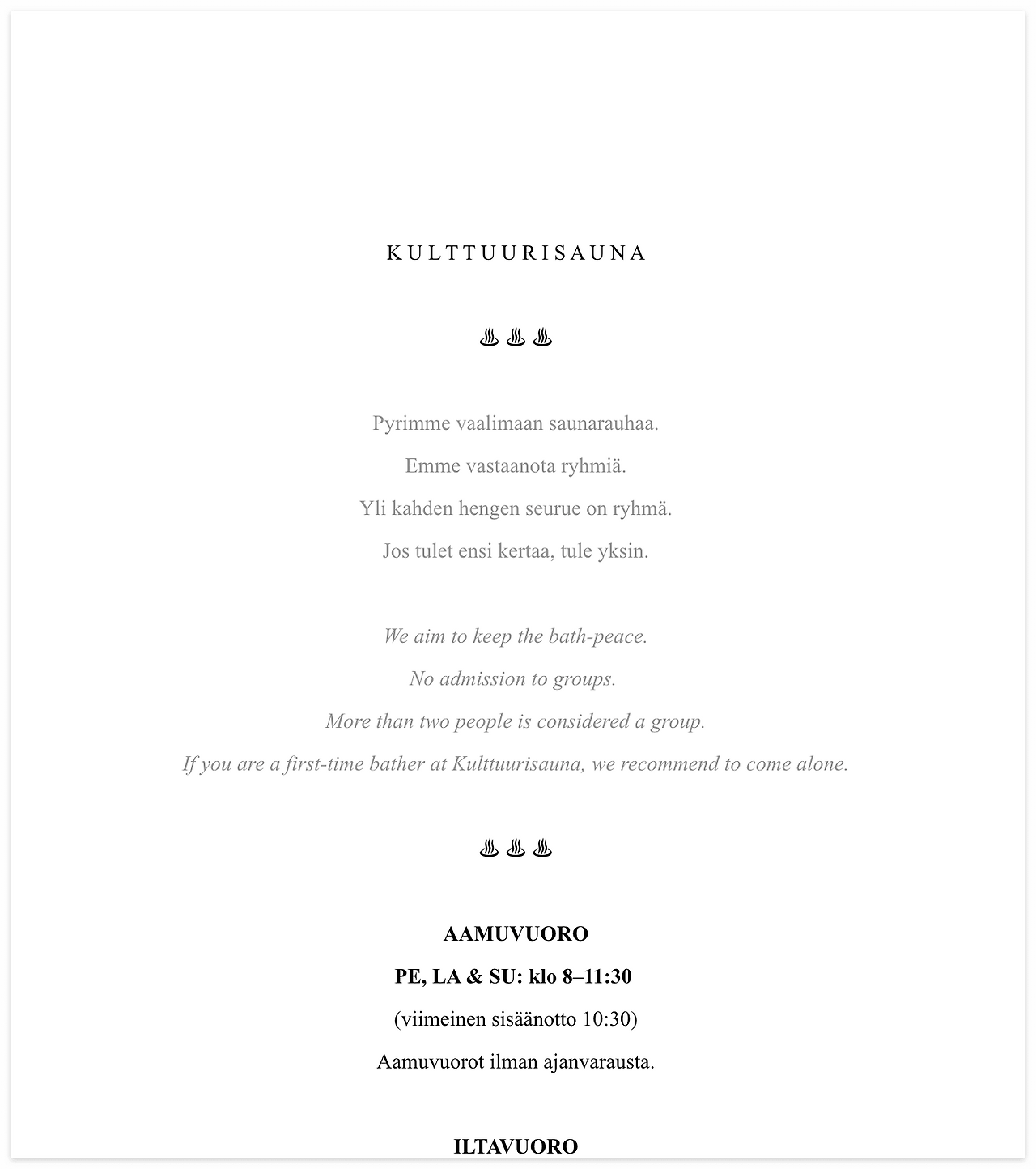 웹사이트 : https://kulttuurisauna.fi/