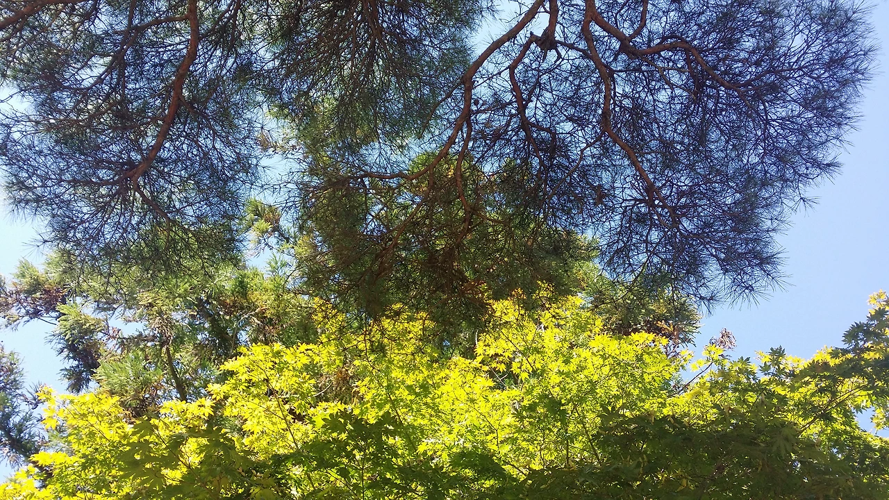 단풍나무의 잎들은 초록과 붉게 물듬사이에 놓여있고 열매는 양날개를 펼치고 익어간다.