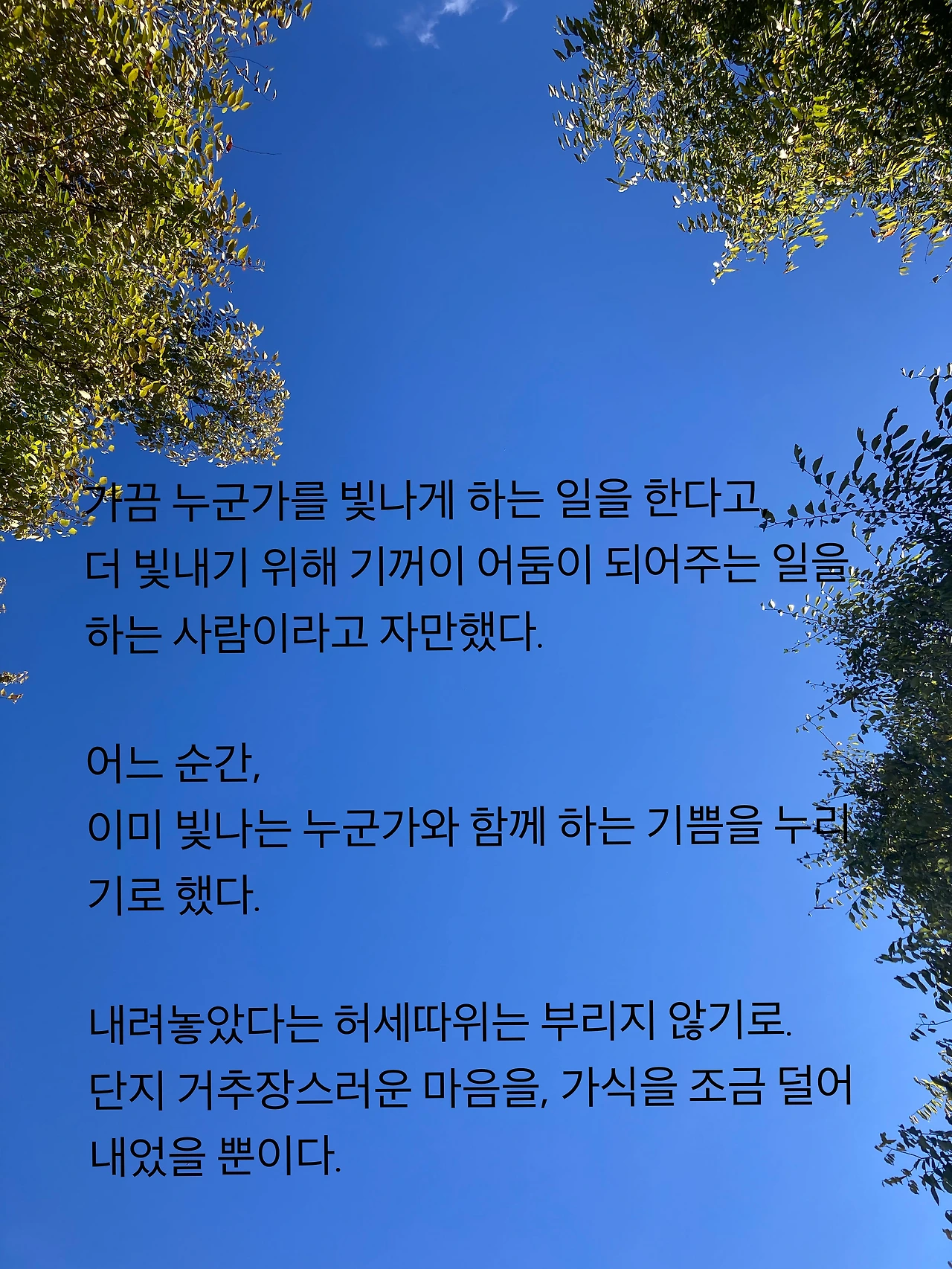 일과 놀이를 잘하자! 허술한 여행자이긴해도 괜찮은 어른으로 잘 자라고 싶습니다. 우아하게 가난해지는 방법을 연구하며 가끔 제목만 있는 책을 씁니다.