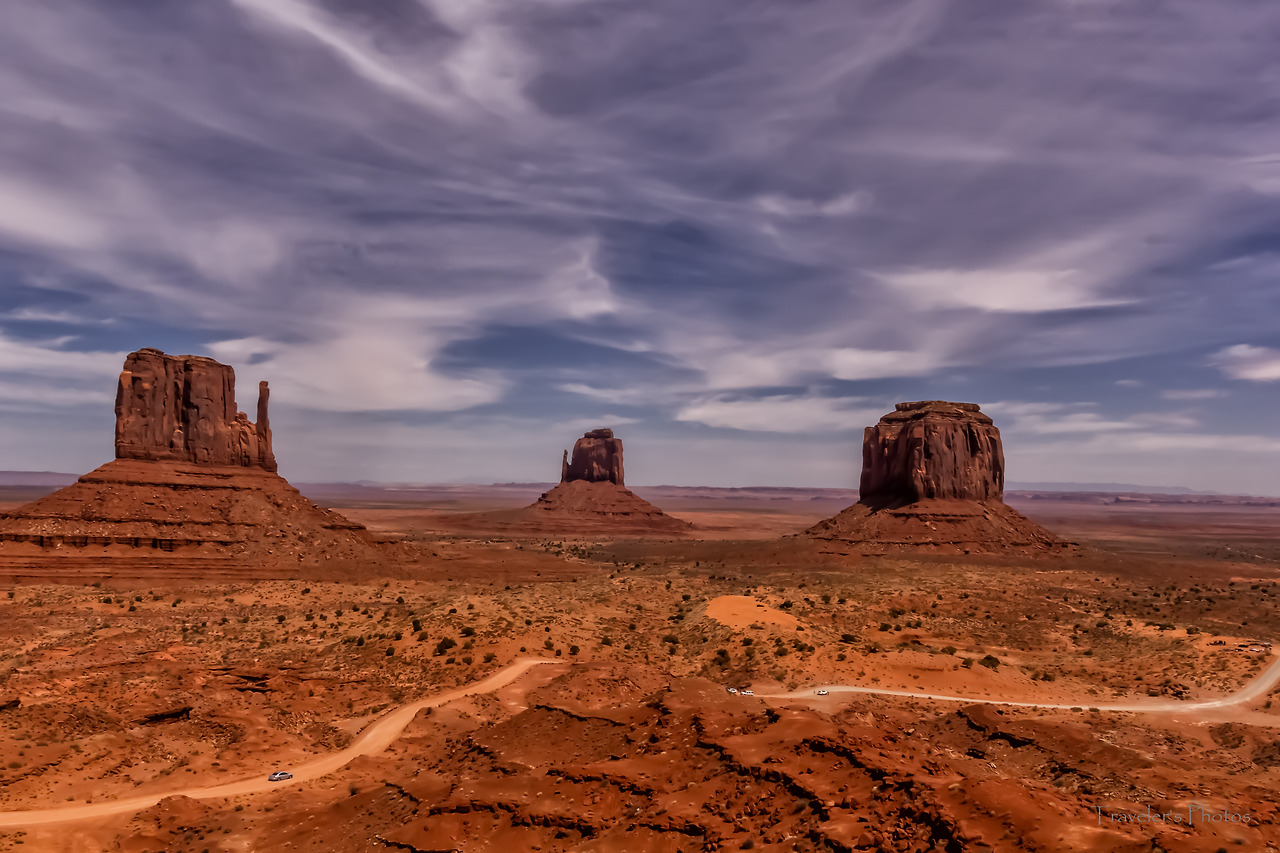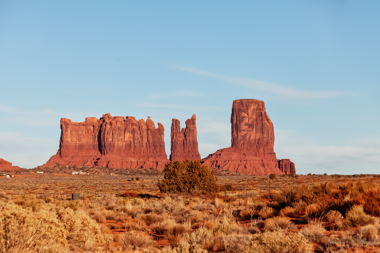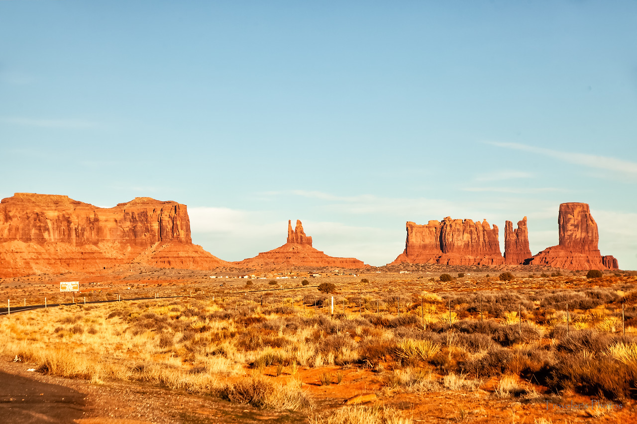 그 파노라마 가운데 즈음에 모뉴멘트 밸리가 있다. 이곳엔 길 양 옆에 널려있는 뷰트들을 한 지역에 모아놓은 듯한 풍경이다. 이곳을 좀 더 톺아보고 싶으면 물론 안으로 들어가야 한다. 잘 알다시피 이곳은 본래 나바호 족들이 살던 곳이고 지금도 그들의 땅으로 남아있다. 그러므로 모뉴먼트 밸리의 모든 관리는 나바호 족에서 관할하고 있는 말하자면 사립 유원지(?)라고 할 수 있다.