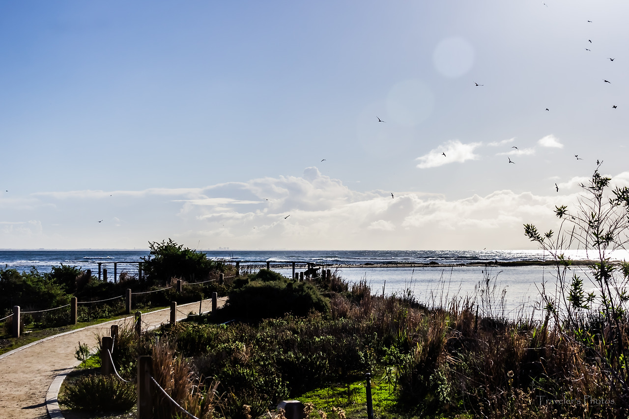 산책로 끝부분에는 서서 바다를 바라를 볼 수 있게 돼있다. 그 눈에 바다를 막고 있는 모래톱이 있고, 그 모래톱을 집으로 삼아 머무는 새들이 가득하다. 이들은 물론 철새는 아니다. 주로 갈매기와 팰리칸, 왜가리가 있고 뜸부기도 있다고 한다.