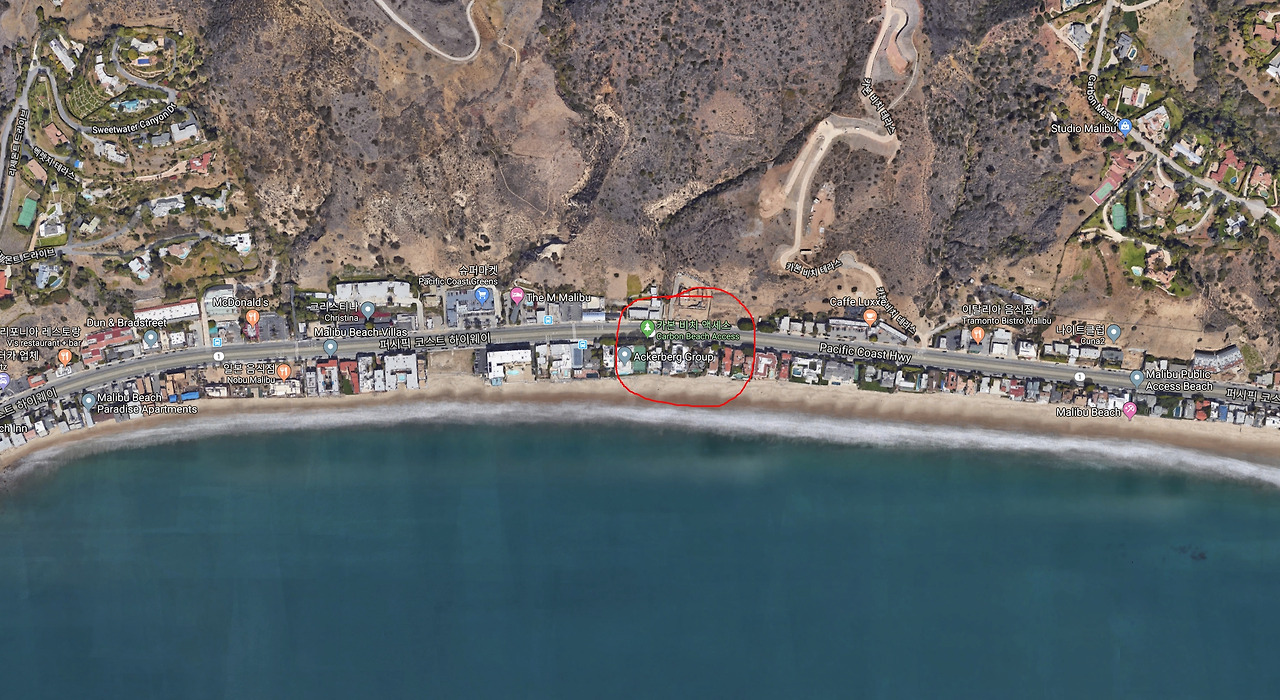 처음에 어떻게 이런 일이 시작됐는지는 모르겠다. 처음부터 사유지로 허용하지 않았다면 이런 일이 일어나지도 않았을 텐데 말이다. 말리부에는 카본 비치(Carbon Beach)라는 모래밭이 좋기로 이름난 약 일 마일 정도의 구간이 있는데, 그동안 이 해안에 집을 지은 사람들이 모래밭까지 막아놓고 일반인들의 출입을 막아왔다. 그러다 최근에 이곳으로 들어갈 수 있게 두어 곳에 개구멍을 만들어 놓았다. 바로 이 구간에 있는 집 가운데 하나가 앞에서 말한 가격에 팔렸다고 한다.