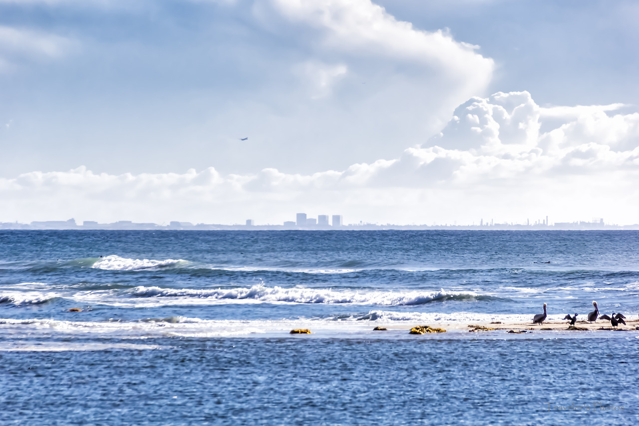 저 멀리 수평선에 걸쳐있는 도시는 산타모니카, 마리나 델 레이, 그리고 팔로스 버디스 까지 보이는 것 같다.