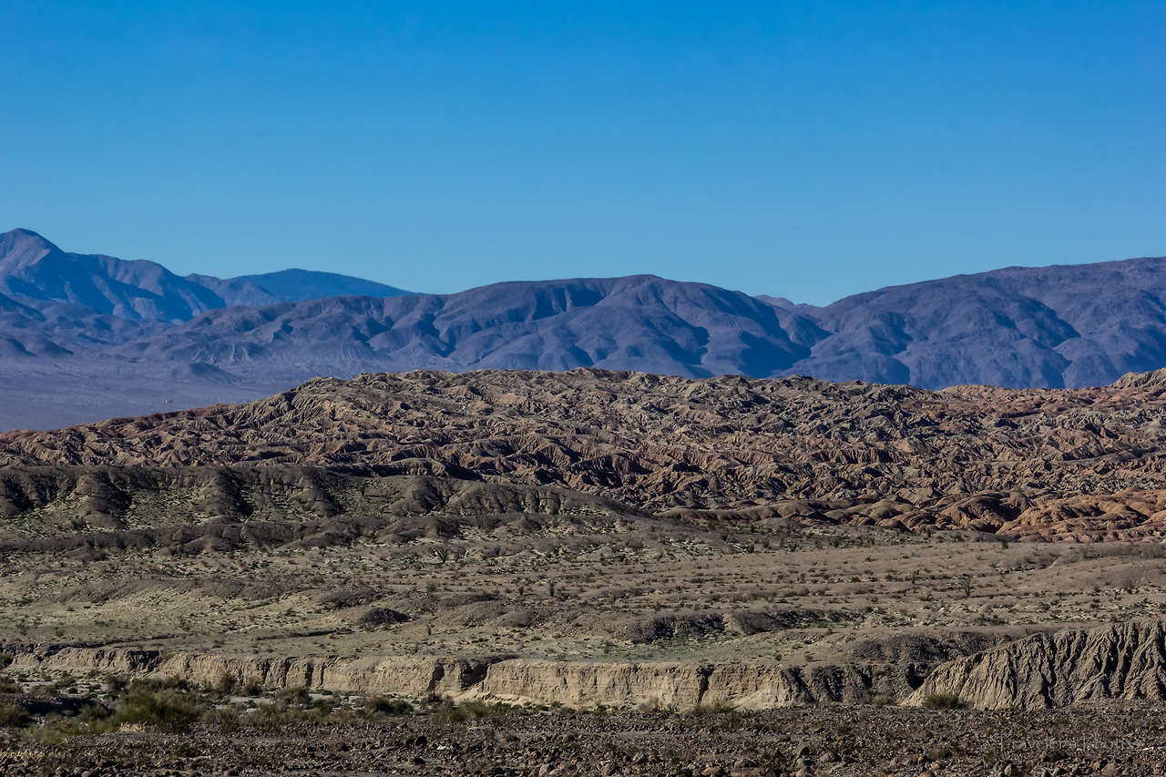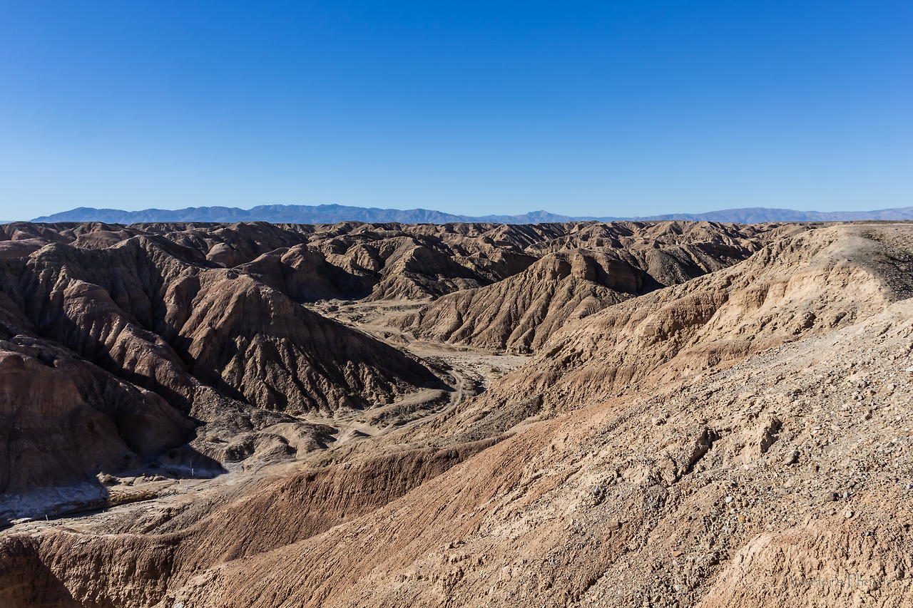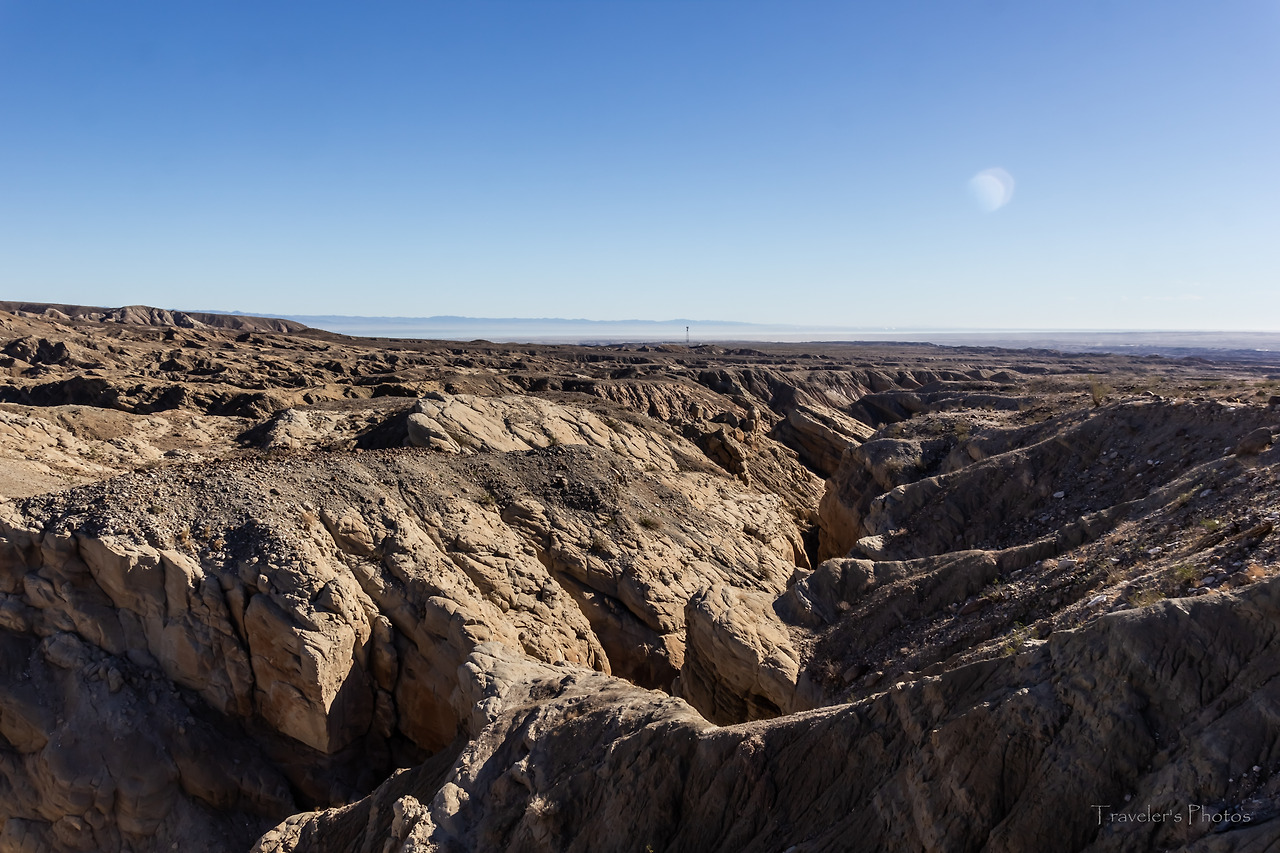 솔톤 씨로 가다 보면 만날 수 있는 곳 가운데 배드랜즈 전망대가 하나 있다. 이곳에서 볼 수 있는 땅 모양은 어제 지나온 폰츠 포인트에서 보는 것과는 좀 다르다. 비슷해 보이기는 하지만 아무래도 땅을 이루는 것이 다른 것 같다. 골이 깊이 파인 것이 여기도 물이 흘러 생긴 것 같은데, 비가 드문 사막에서 이 정도로 파이려면 도대체 얼마나 많은 세월이 흘렀을까 싶은 생각이 든다.