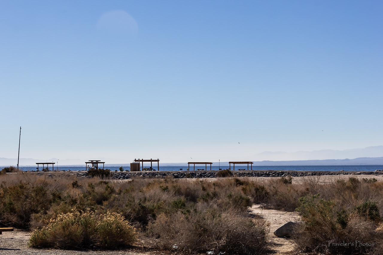 호수의 북쪽으로 해변(?)이 있는데, 바다에만 있을 법한 모래밭이 끊임없이 이어져 있고, 이 모래밭에 공원과 야영장이 여럿 만들어져 있다. 겉에서 보이는 호수는 그저 아름답고 낭만스러울 것만 같은데, 막상 가까지 가보면 겉에서 보는 것과는 많이 다르다. 우선 물에서는 그리 상쾌하지 않은 냄새가 나고, 물빛은 다소 어둡다. 아마 소금기가 많기 때문일 것이다.