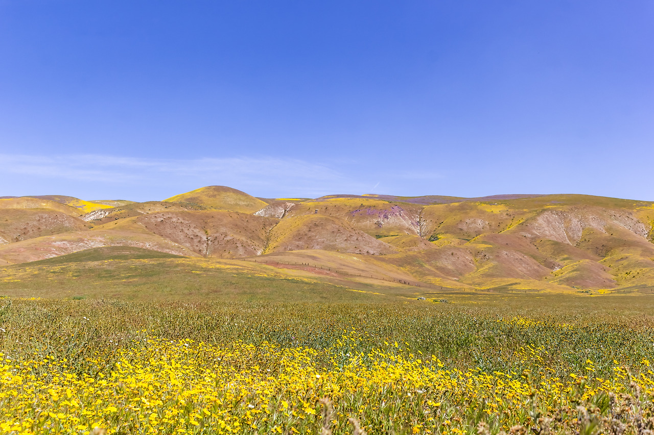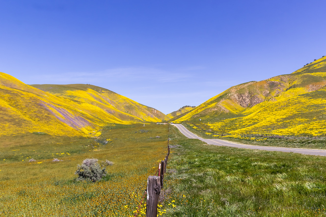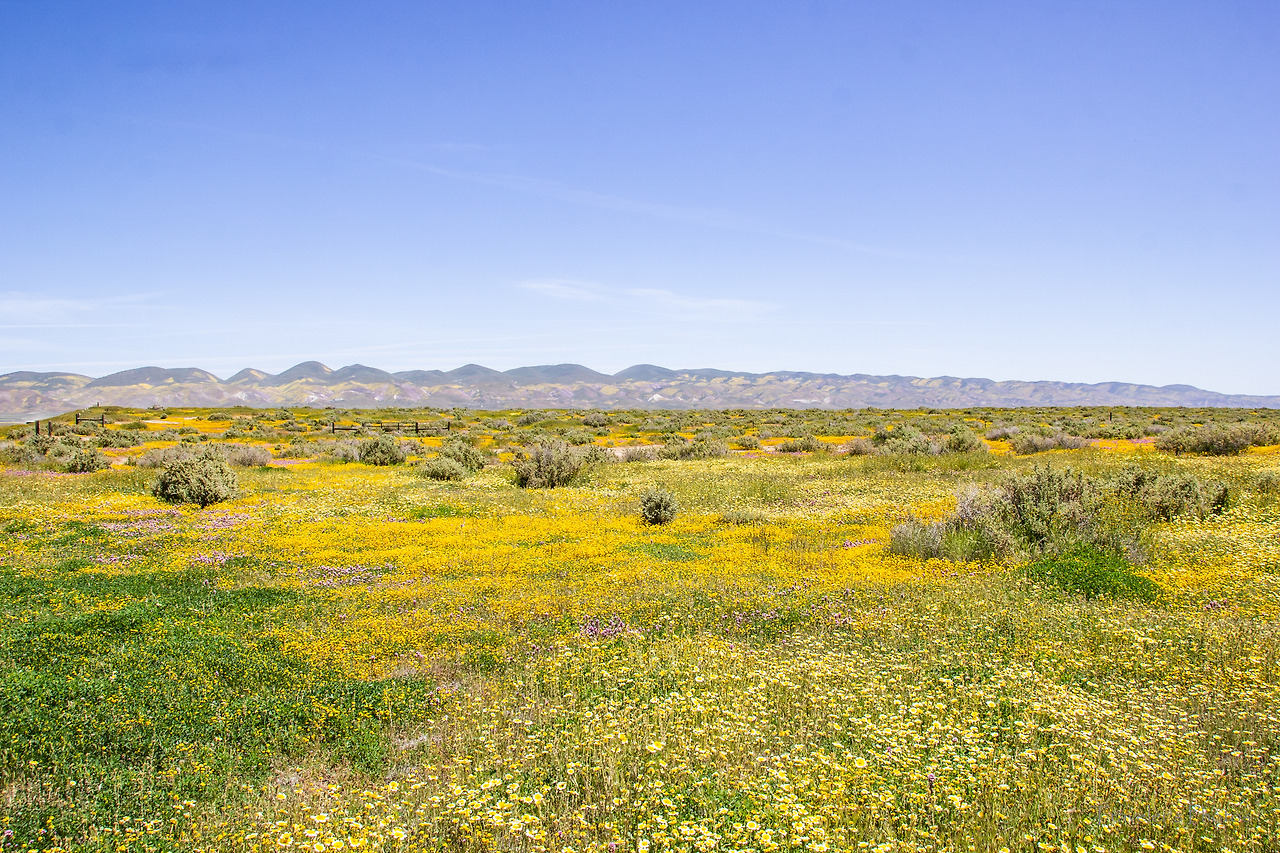 지난겨울 내린 많은 비 때문에 캘리포니아는 지금 대폭발이라고 표현해도 지나치지 않을 만큼 많은 꽃이 피고 있다. 슈퍼 블룸(Superbloom)이라고 표현하는 이번 들꽃 잔치는 캘리포니아 어디를 가도 꽃이 가득할 만큼 대단하다. 마을에 작은 빈터만 있어도 들꽃들로 가득하다. 그야말로 꽃이 발에 치인다. 로스앤젤레스 가까이에는 들꽃이 모여있어 장관을 이루는 곳이 많은데, 그 가운데 앤텔로프 밸리의 '양귀비 보호지역'이 이름나 있고, 카리조 대평원의 들꽃, 엘시노어 호수 인근의 양귀비 군락지가 들꽃이 많기로 이름나 있다. 그 밖에도 데스밸리 국립공원, 엔자 보레고 주립공원, 조슈아 트리 국립공원, 모하비 국립 사막 보호구역 따위의 사막에도 어여쁜 들꽃이 피기로 이름나 있다. 그뿐 아니라 프레즈노에서 베이커스 필드까지 이어지는 대규모 과일 농장은 이른 봄부터 갖은 꽃들이 피어나 장관을 이룬다. 그 많은 곳 가운데 이번에는 카리조 대평원의 들꽃을 소개하려고 한다.