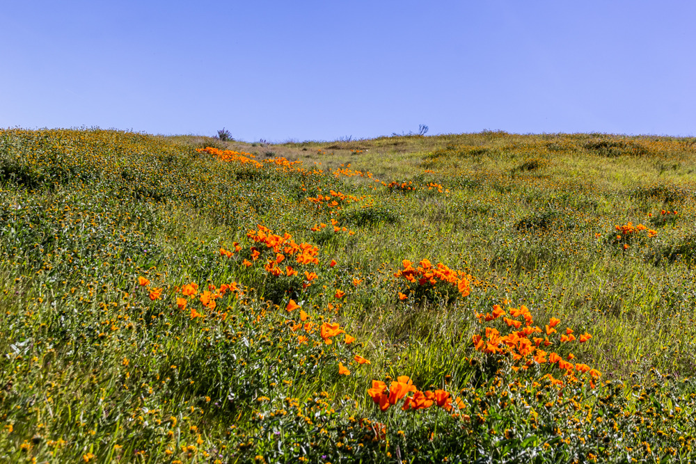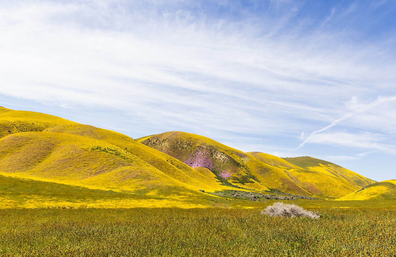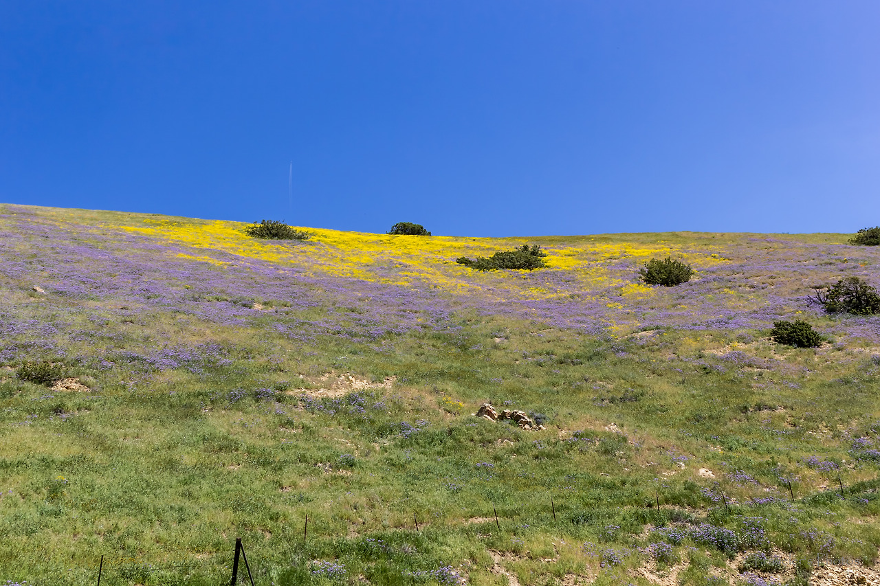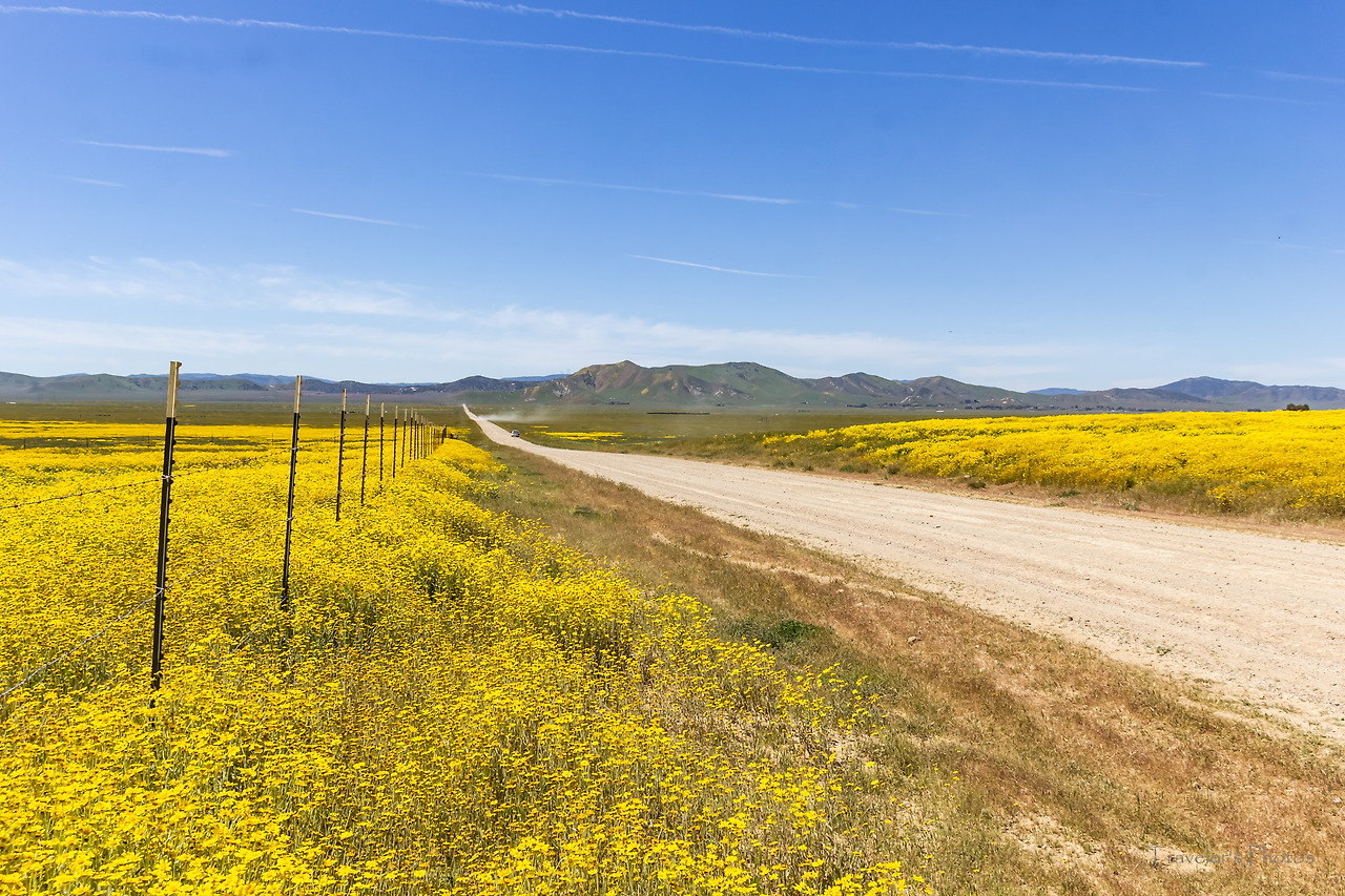 지난겨울 내린 많은 비 때문에 캘리포니아는 지금 대폭발이라고 표현해도 지나치지 않을 만큼 많은 꽃이 피고 있다. 슈퍼 블룸(Superbloom)이라고 표현하는 이번 들꽃 잔치는 캘리포니아 어디를 가도 꽃이 가득할 만큼 대단하다. 마을에 작은 빈터만 있어도 들꽃들로 가득하다. 그야말로 꽃이 발에 치인다. 로스앤젤레스 가까이에는 들꽃이 모여있어 장관을 이루는 곳이 많은데, 그 가운데 앤텔로프 밸리의 '양귀비 보호지역'이 이름나 있고, 카리조 대평원의 들꽃, 엘시노어 호수 인근의 양귀비 군락지가 들꽃이 많기로 이름나 있다. 그 밖에도 데스밸리 국립공원, 엔자 보레고 주립공원, 조슈아 트리 국립공원, 모하비 국립 사막 보호구역 따위의 사막에도 어여쁜 들꽃이 피기로 이름나 있다. 그뿐 아니라 프레즈노에서 베이커스 필드까지 이어지는 대규모 과일 농장은 이른 봄부터 갖은 꽃들이 피어나 장관을 이룬다. 그 많은 곳 가운데 이번에는 카리조 대평원의 들꽃을 소개하려고 한다.