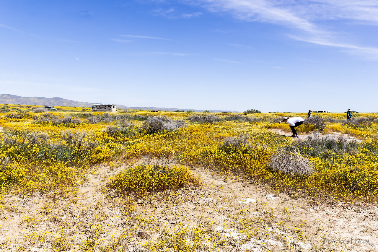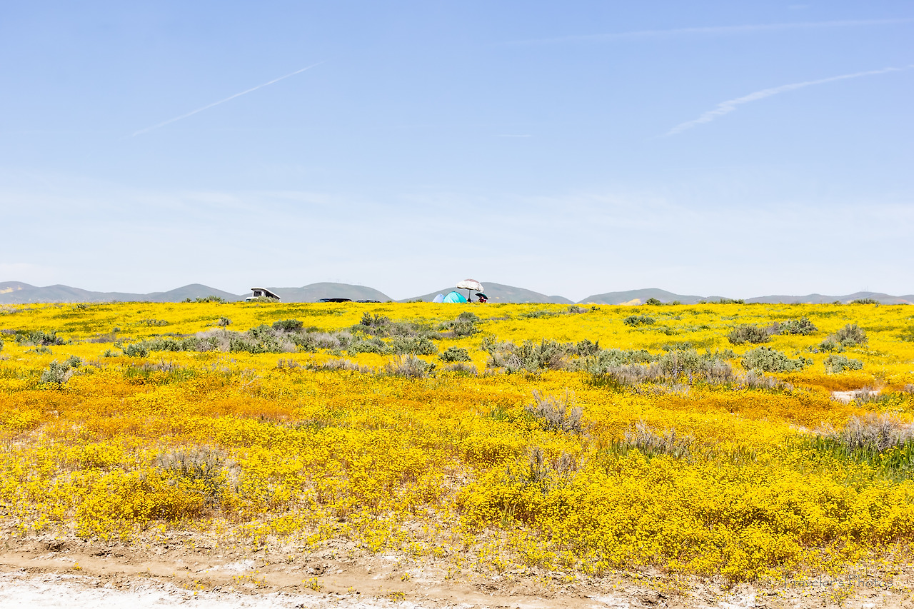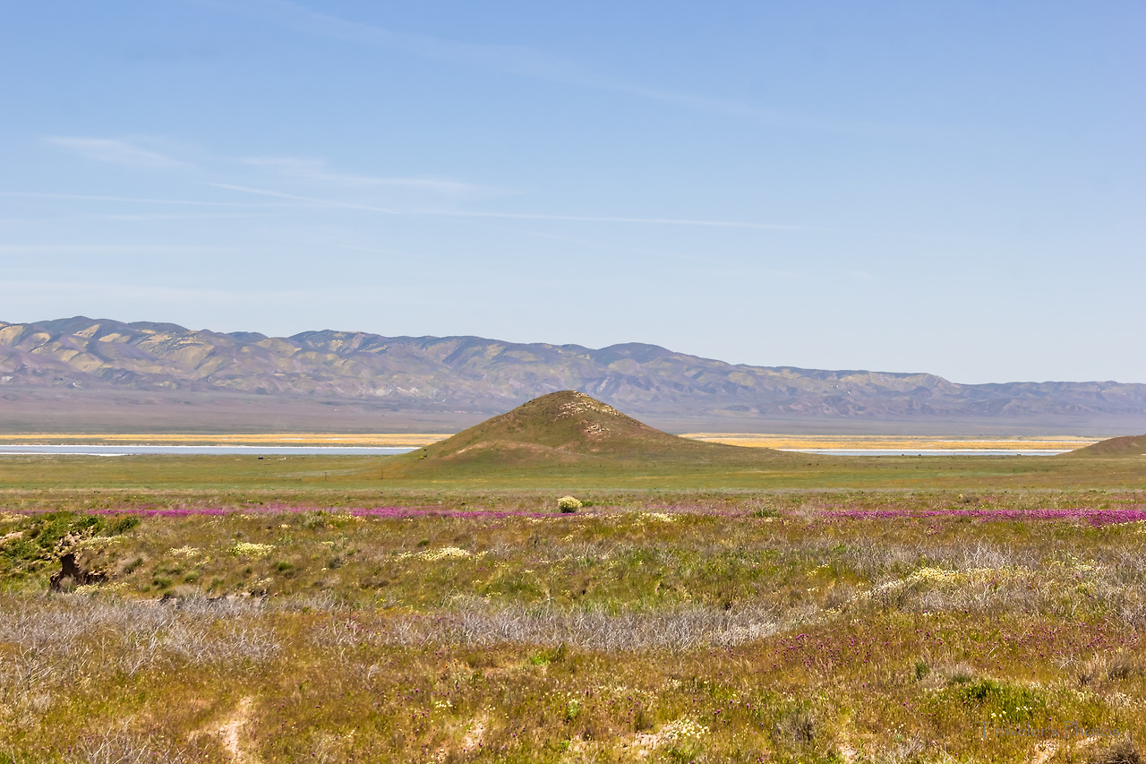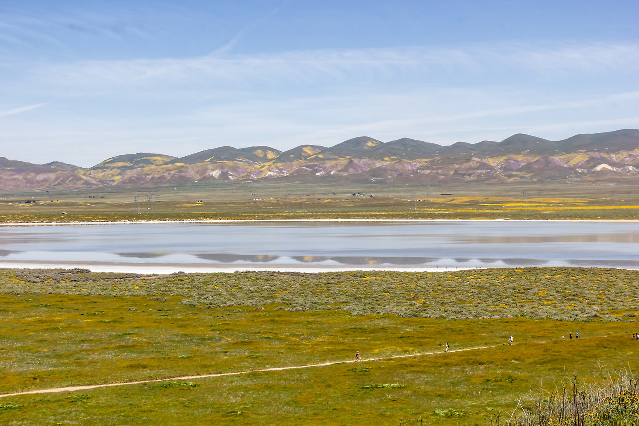호수를 끼고 한 바퀴 돌다 보면 전망대와 방문자 센터가 있는 호수 서쪽에 사람들의 그림자가 많은 것을 볼 수 있다. 호수와 평야와 템블러 산을 한눈에 볼 수 있는 풍경이 펼쳐져 있기 때문일 것이다. 그런데 소다 호수에는 호수를 가로지를 수 있는 길이 두어 개 있는데 이 길을 가다 보면 길섶으로 눈이 아른거릴 만큼 많은 꽃이 피어있다. 이곳은 그야말로 인산인해다.