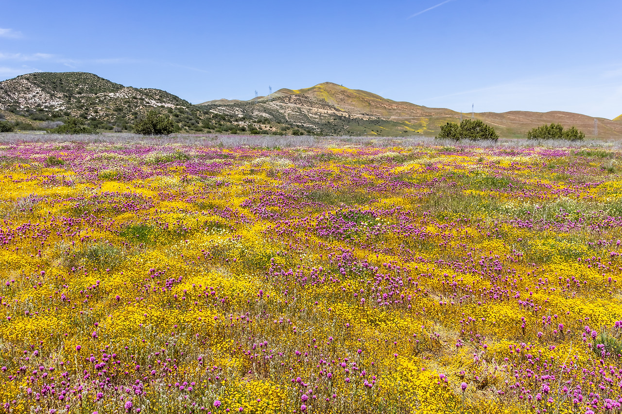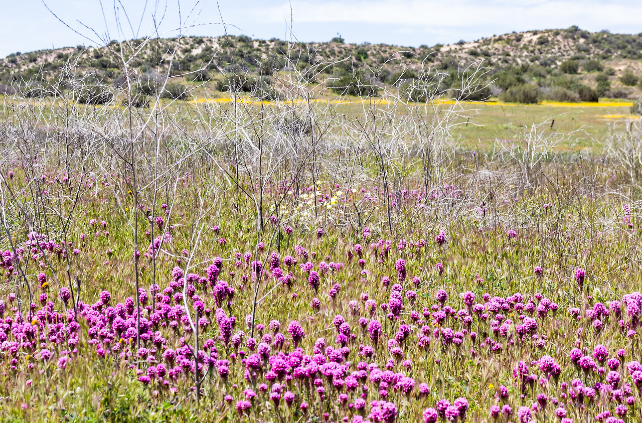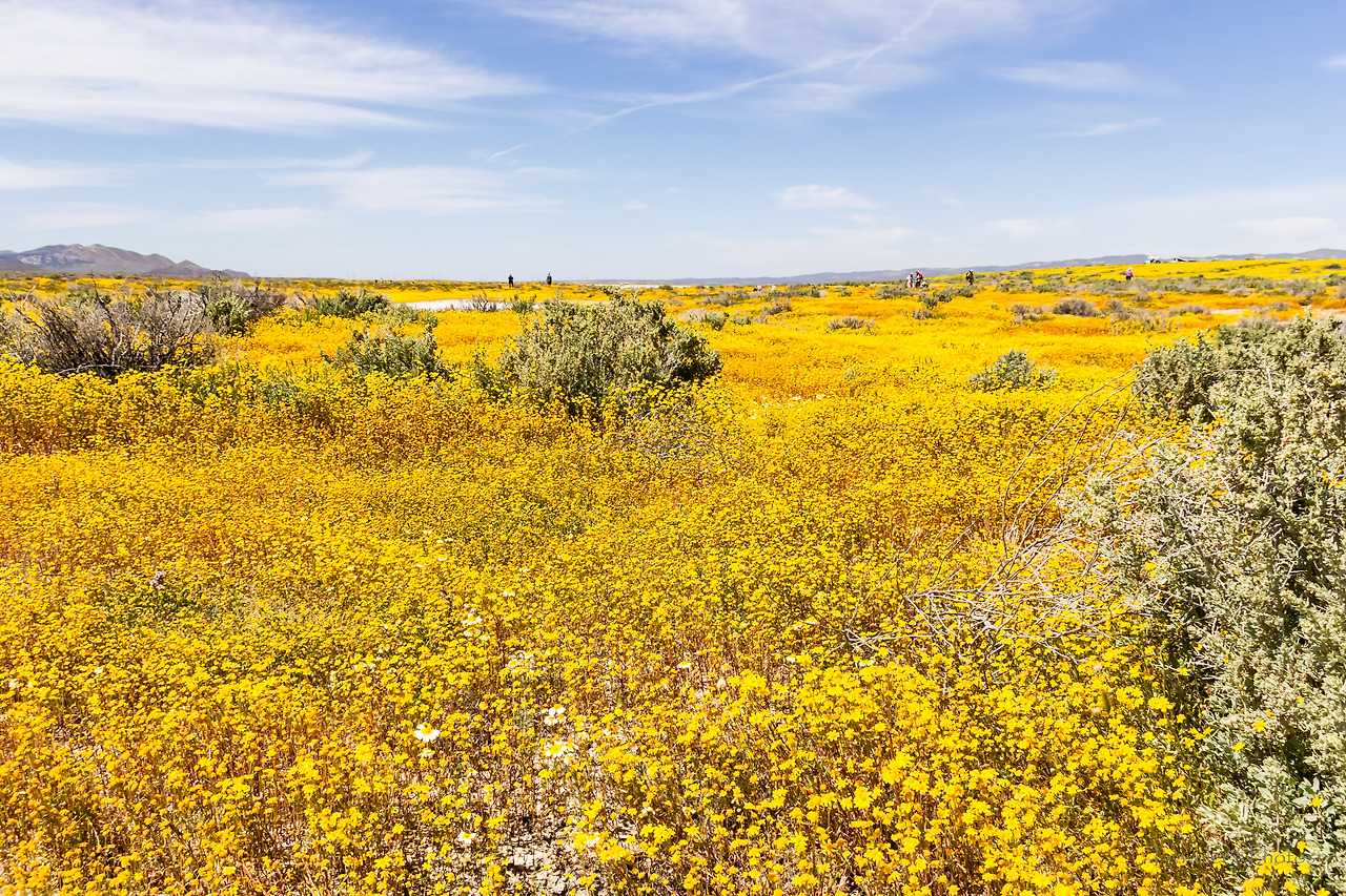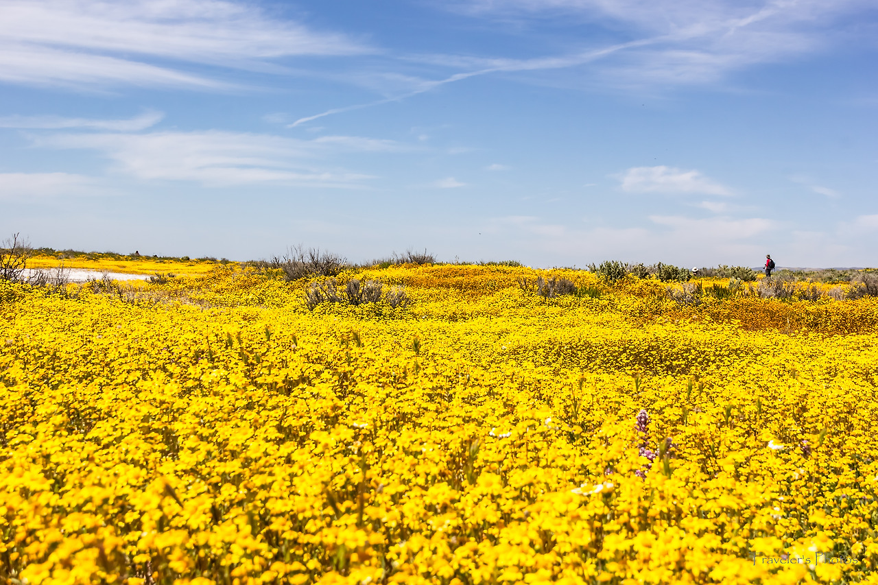 호수를 끼고 한 바퀴 돌다 보면 전망대와 방문자 센터가 있는 호수 서쪽에 사람들의 그림자가 많은 것을 볼 수 있다. 호수와 평야와 템블러 산을 한눈에 볼 수 있는 풍경이 펼쳐져 있기 때문일 것이다. 그런데 소다 호수에는 호수를 가로지를 수 있는 길이 두어 개 있는데 이 길을 가다 보면 길섶으로 눈이 아른거릴 만큼 많은 꽃이 피어있다. 이곳은 그야말로 인산인해다.