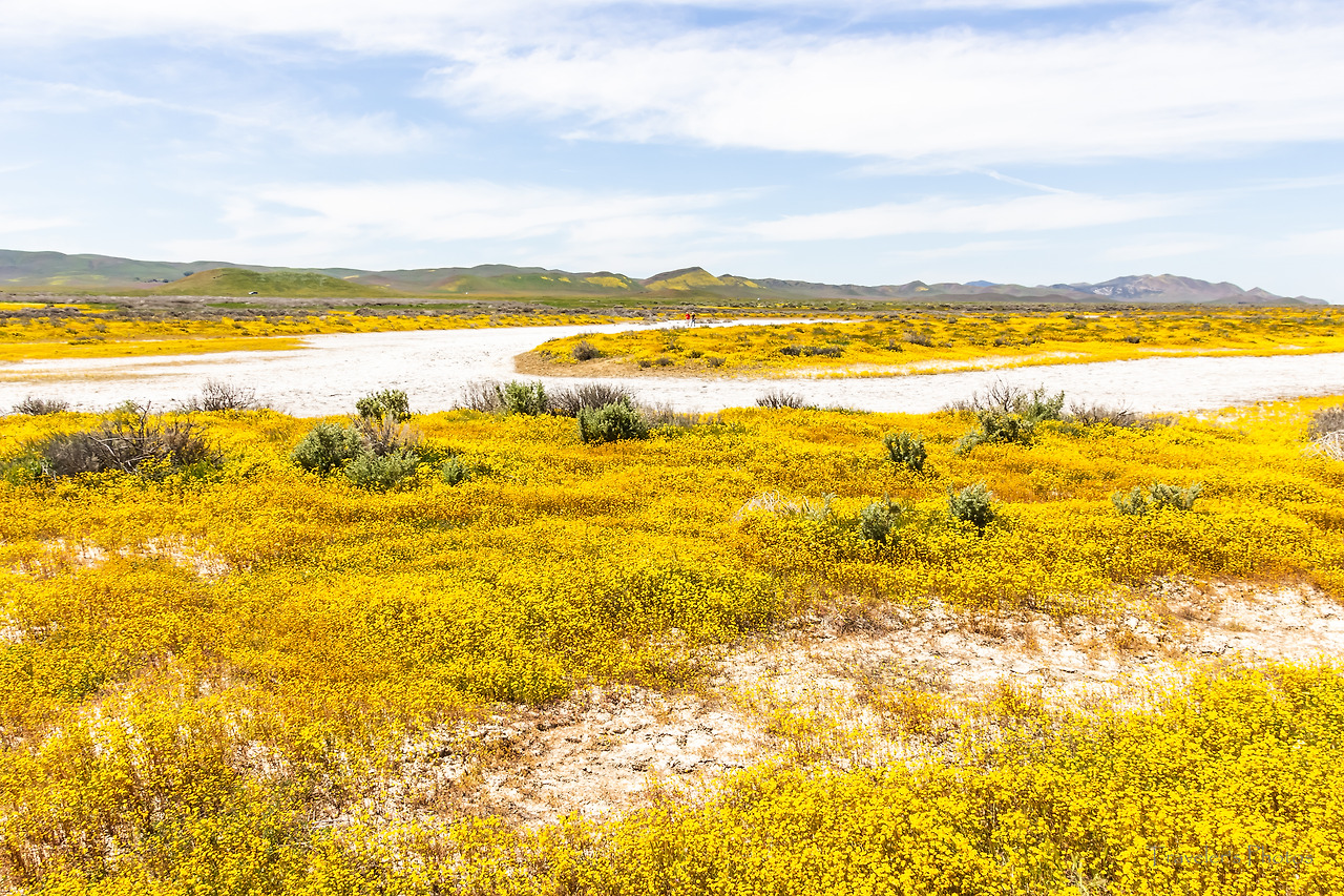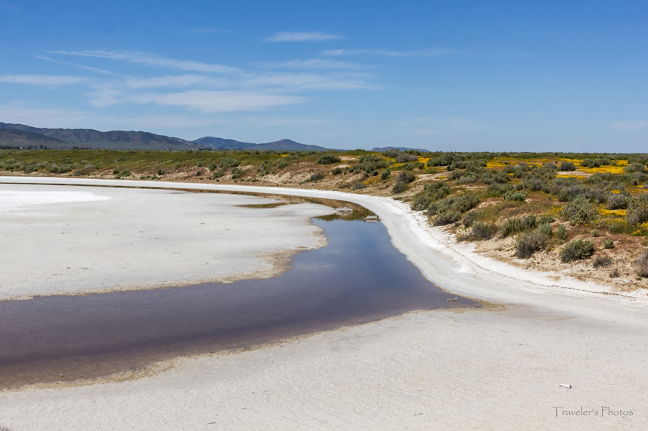 카리조 플레인의 흙이 그런지 확실치는 않지만 소다 호수로 흘러들어 가는 물줄기엔 늘 소금기가 묻어있다. 어디 냇물이나 강물이 호수로 흘러드는 것은 아니고, 비가 내리면 빗물이 호수로 흘러들어 가다 힘에 부치면 말라버리기도 하고, 일부는 호수까지 들어가기도 한다. 이런 물줄기가 꽤 여럿이지만, 겉에서 그들을 알아채기는 어렵다. 언젠가 작은 무인 비행기를 이용해 찍은 소다 호수로 흐르는 물줄기를 본 적이 있다. 그 모습이 눈높이에서 보는 것보다 훨씬많고 물줄기가 ㅇ한만해 아릅답기마저 했다. 파란 대지, 봄엔 샛노란 들꽃이 가득하고, 여름엔 짙푸른 풀들이 가득한 곳을 가로질러 흐르는 하얀 물줄기는 하늘에서 보는 것만큼이나 눈높이로 보기에도 색다르고 별나다.