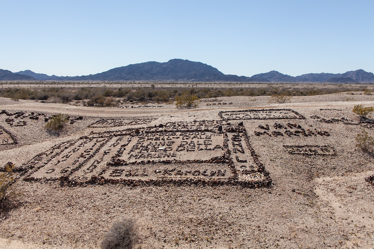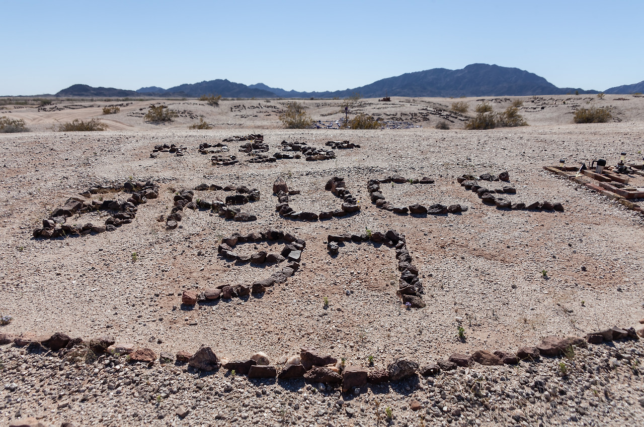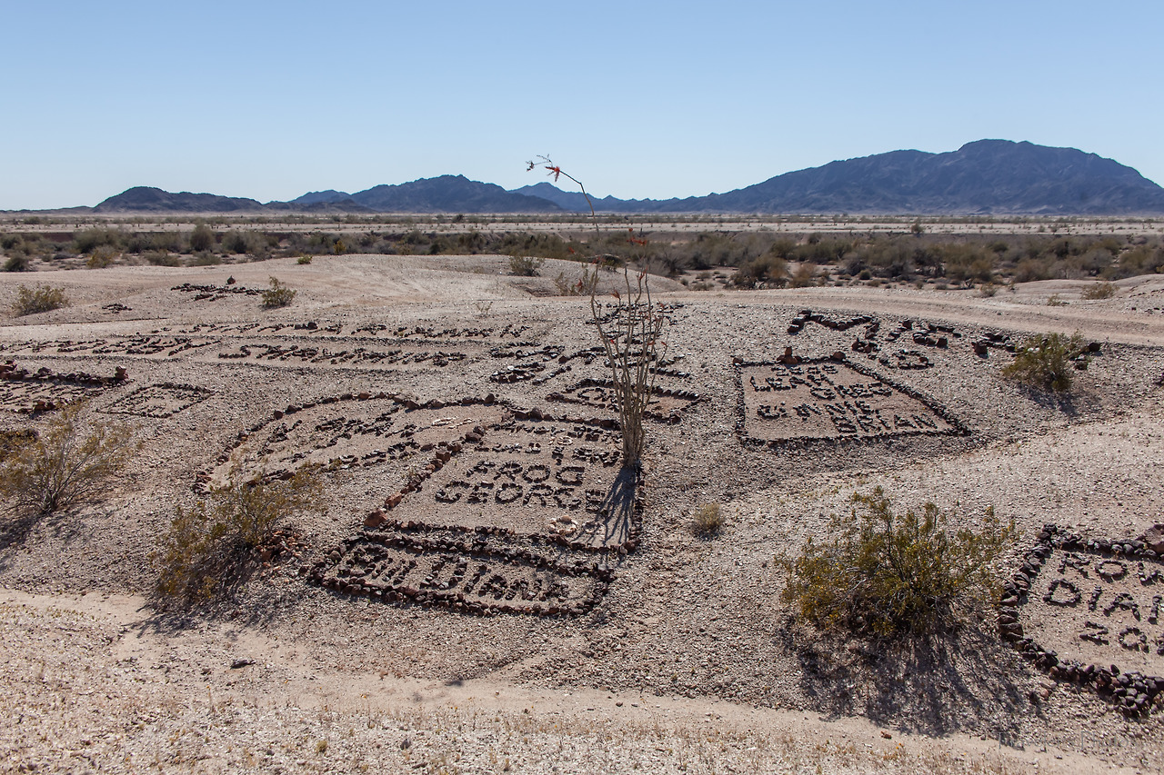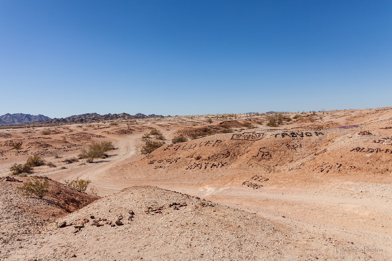 제2차 세계대전이 한창 진행되던 1940년대 미군 훈련소가 이 근방에 있었는데, 이때 훈련받던 군인들이 모래 위에 주변에 있던 돌로 이름을 쓰게 된 데서 유래했다. 그 당시에는 '낙서 언덕(Grafiti Mesa)'으로 불리다가 그들이 철수한 뒤에도 이름 쓰기가 계속되면서 오늘날 이 이름으로 불리게 되었다.