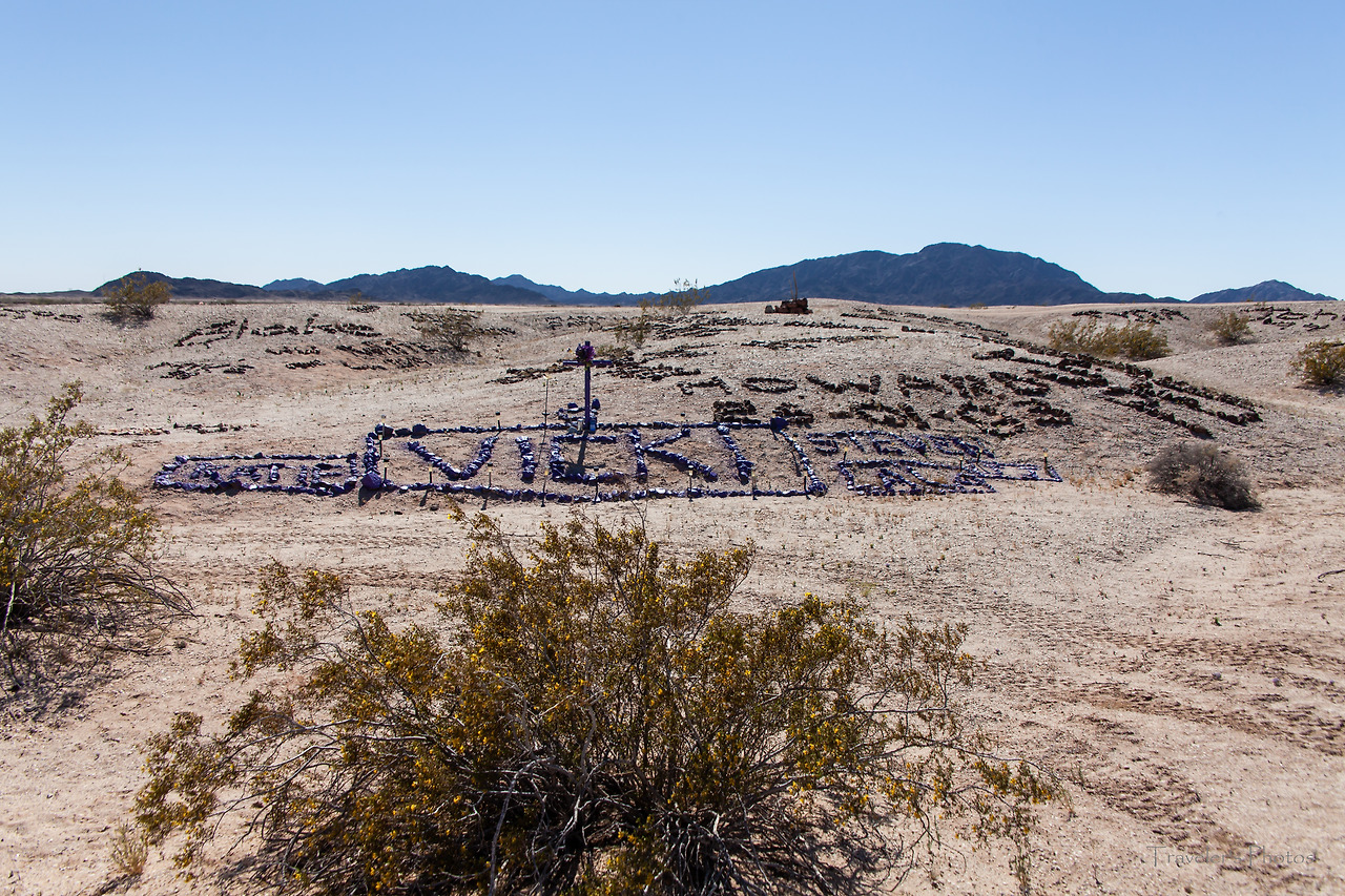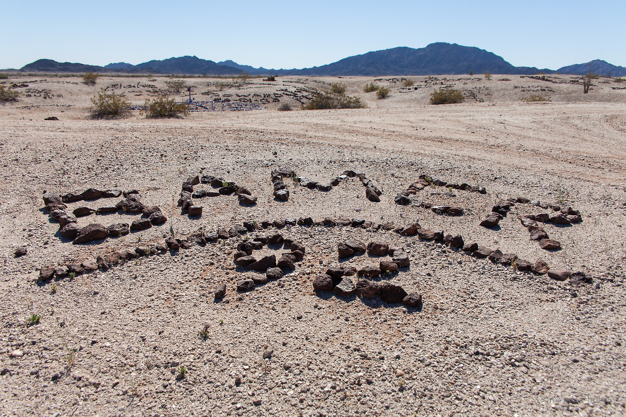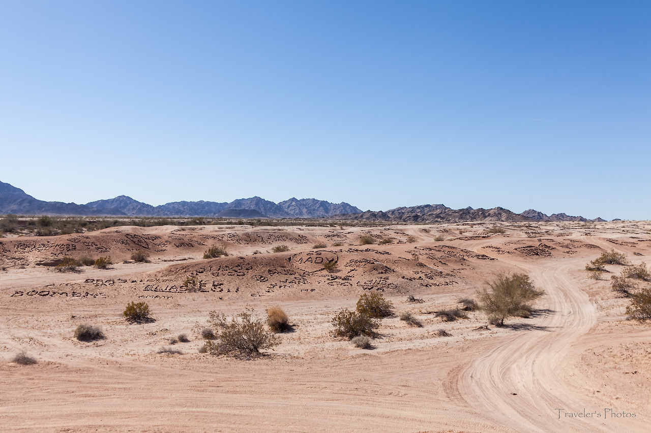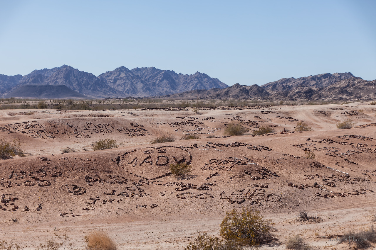 제2차 세계대전이 한창 진행되던 1940년대 미군 훈련소가 이 근방에 있었는데, 이때 훈련받던 군인들이 모래 위에 주변에 있던 돌로 이름을 쓰게 된 데서 유래했다. 그 당시에는 '낙서 언덕(Grafiti Mesa)'으로 불리다가 그들이 철수한 뒤에도 이름 쓰기가 계속되면서 오늘날 이 이름으로 불리게 되었다.