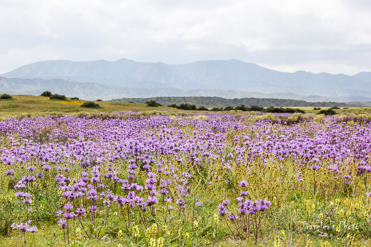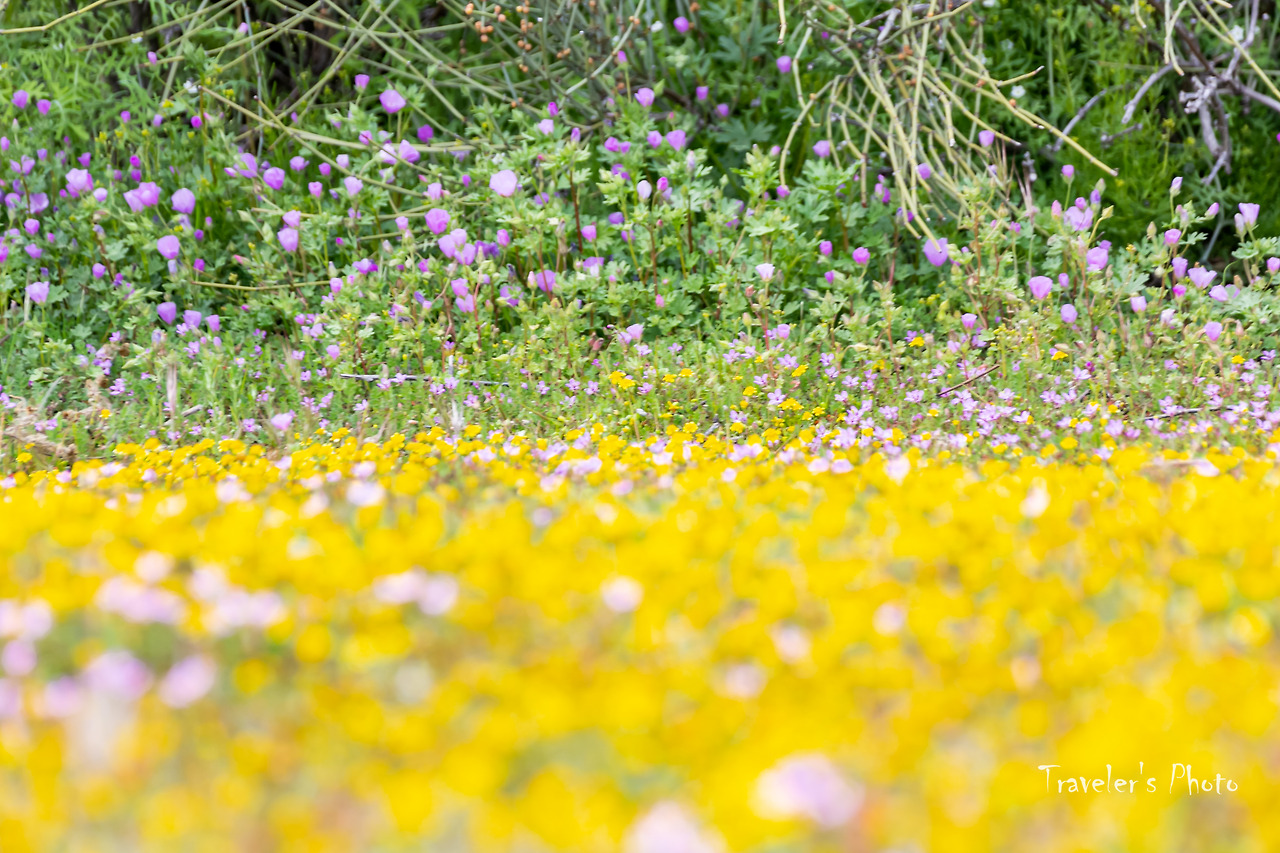 지난 해만 해도 2017년의 슈퍼 블룸에는 못 미치기는 했지만, 수월찮게 많은 꽃이 폈었다. 이곳을 장식하는 꽃은 대체로 노랑이 많지만, 그 사이사이 보랏빛과 분홍빛, 때로는 밝은 빨강의 꽃들이 섞여있다. 이렇게 자연이 연출하는 풍경을 즐기기 위해 해마다 봄만 되면 많은 이들이 여기를 다녀가고는 한다. 더구나 분지의 양쪽에 있는 산에서는 노지 캠핑이 가능하므로 자연을 벗 삼아 캠핑하면서 봄이 베푸는 은혜를 즐기는 사람이 많다.