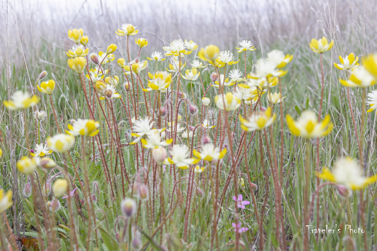 여행을 하다 보면 아주 특이한 경험할 때가 있다. 어떤 지역을 살피다 보면 대체로 비슷한 지형에 비슷한 식물 분포를 보이는데, 그런 가운데서 아주 특이한 곳을 발견하는 경우가 가끔 있다. 이번에도 그런 곳이 있었다. 대평원의 아주 구석진 곳, 전체 넓이로 보면 손톱만큼 밖에 안 되겠지만 나름 꽤 넓은 동산에 예년에 버금갈 만큼 꽃이 흐드러졌다. 꽃의 종류는 다르지만 온 동산을 물들인 노랑의 물결이 넘실대는 것을 보니 그저 놀라울 뿐이다. 노랑으로 이어진 길섶엔 가끔씩 다른 빛깔들이 섞여 어쩌면 지루할 수도 있는 풍경에 흥미를 더한다. 왜 그런지는 모르겠지만 한 가지 빛깔이었다면 자칫 지나칠 수도 있는 풍경에 다른 빛깔, 다른 모습을 한 것들이 섞여있어 눈길을 끌어 가던 길을 멈추게 된다.