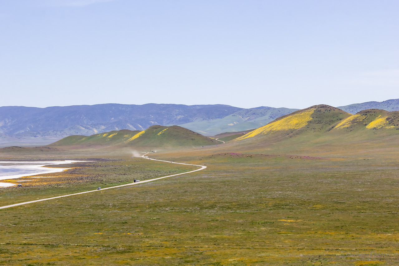그러나 카리조 플레인이 사람들에게 많이 알려진 까닭은 따로 있다. 봄만 되면 이 거대한 평원과 평원을 둘러싼 산에 들꽃이 흐드러져 정신없기 때문이다. 마치 물감을 흩뿌려놓은 것처럼 알록달록 꽃들이 무리를 이뤄 주변의 동산과 평원은 한 폭의 그림보다 더 아름답고 신비하다. 때마침 호수가 말라 하얀 속살을 드러냈다면 신비로운 느낌은 더 커진다. 새하얀 소금밭을 전경으로 꽃이 핀 풍경을 담으려는 사람들로 북적이고는 하는 곳이다. 이곳은 다른 지역보다 봄꽃이 좀 늦게 피고는 하는데 사람들은 다른 곳에 꽃이 시들해질 무렵부터 이곳을 찾기 시작한다. 그러므로 보통 해마다 3월 중순부터 꽃이 피기 시작해서 4월 말, 5월 초에 흐드러진다.