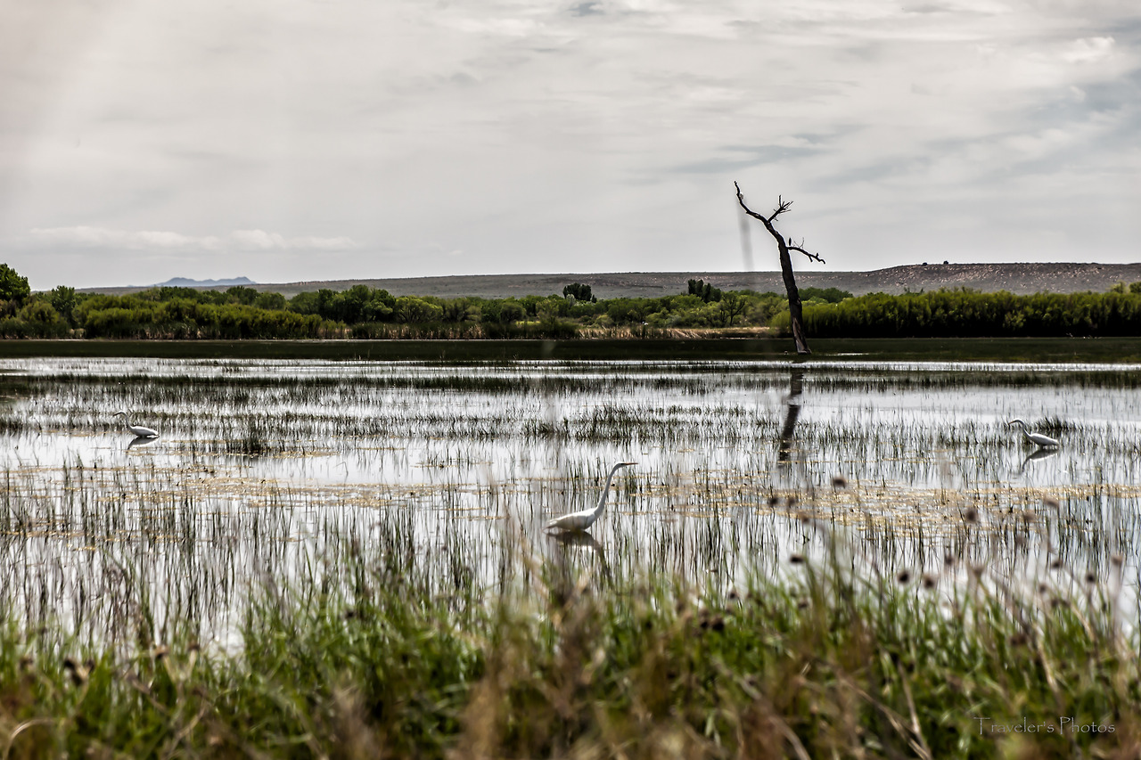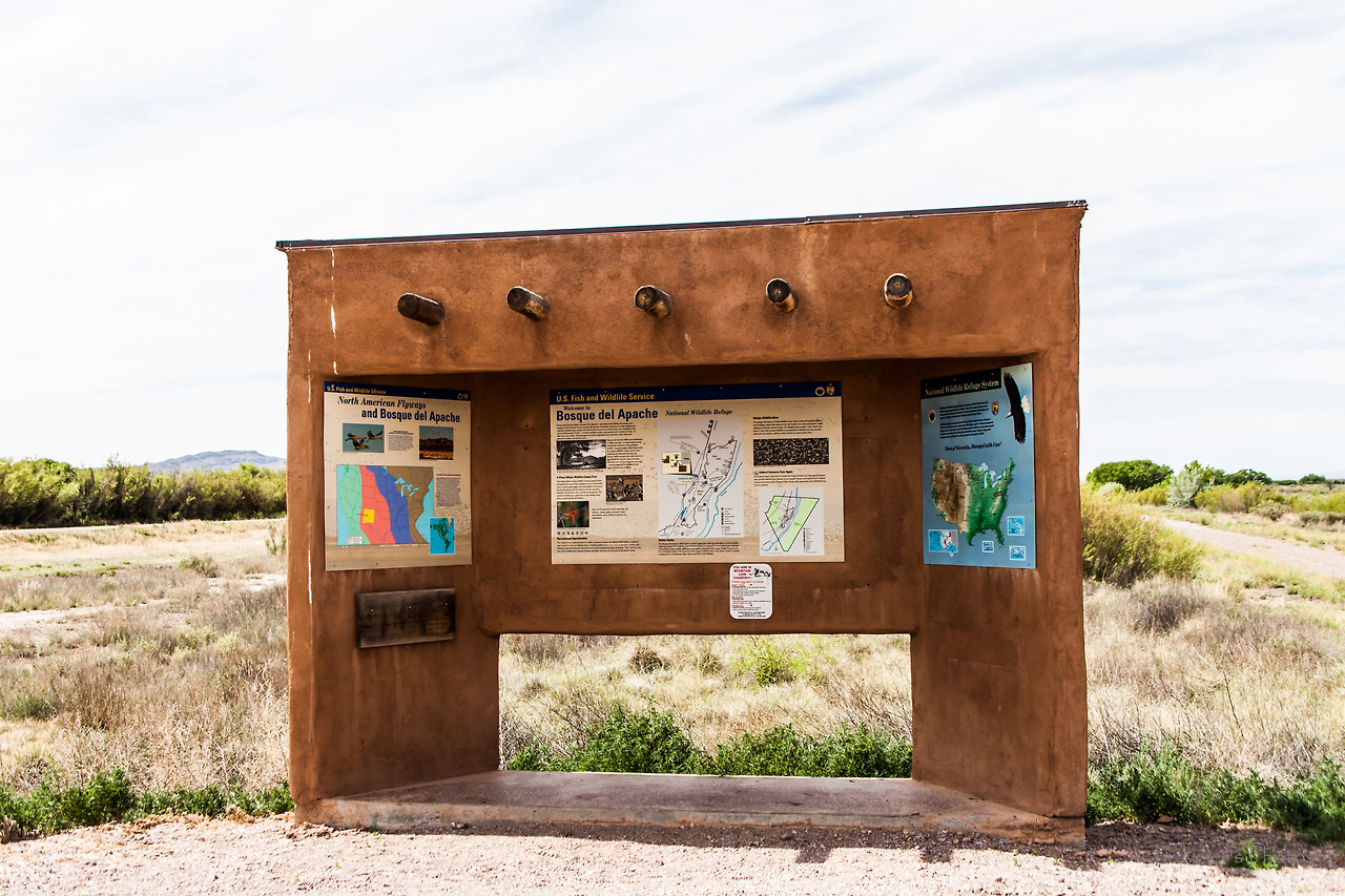 그렇게 밤을 새워 운전해서 새벽 네시 반(현지 시간 다섯 시 반;캘리포니아와 뉴멕시코는 시간대가 다르다)에 도착했다. 세 시간 정도 눈을 붙이고, 아침에 눈을 떠보니 몸 상태가 생각보다 괜찮다. 다행이다. 너무 고단하지도 않고, 그렇다고 넘치지도 않는 적당한 긴장이 있었다. 간편하게 아침을 해결하고 첫 번째 목적지로 향했다. 보스크 델 아파치 국립 야생동물 보호구역(Bosque del Apache National Wildlife Refuge)은 미국 전역에서 뿐만 아니라 북아메리카에서도 겨울철 철새 도래지로 이름난 곳이다. 겨울철이면 철새를 보려는 사람들로 북새통을 이뤄 발 디딜 틈이 없다고 한다. 그러나 여름에 가까워지는 5월이면 철새는 이미 날아가고 비수기로 접어든 시기다. 방문자 센터의 말로는 아직 남아있는 새들이 좀 있고, 토박이 새들도 꽤 된다고 하니 나름 기대를 했지만, 역시 많은 새를 만나기에는 시기적으로 많이 늦은 감이 있다. 그러면 이곳에 왜 왔을까? 사실 이곳이 철새도래지로 이렇게 유명하다는 것을 몰랐다. 아니, 이곳이 여기에 있는지 조차 몰랐다. 오늘의 주 목적지이자 두 번째 방문지인 하얀 모래 준국립공원(White Sands National Monument)은 점심시간쯤 도착해서 일몰까지 머물 예정이었기 때문에 오전 시간에 갈 만한 곳을 찾다가이곳의 존재를 알게 되었다. 그래서 어떤 곳인가 검색하다가 위와 같은 사실을 알게 되어 어쩔까 고민을 했는데, 다른 곳을 또 찾아 헤매느니 다음을 위해 답사하는 마음으로 한번 둘러보기로 했다.