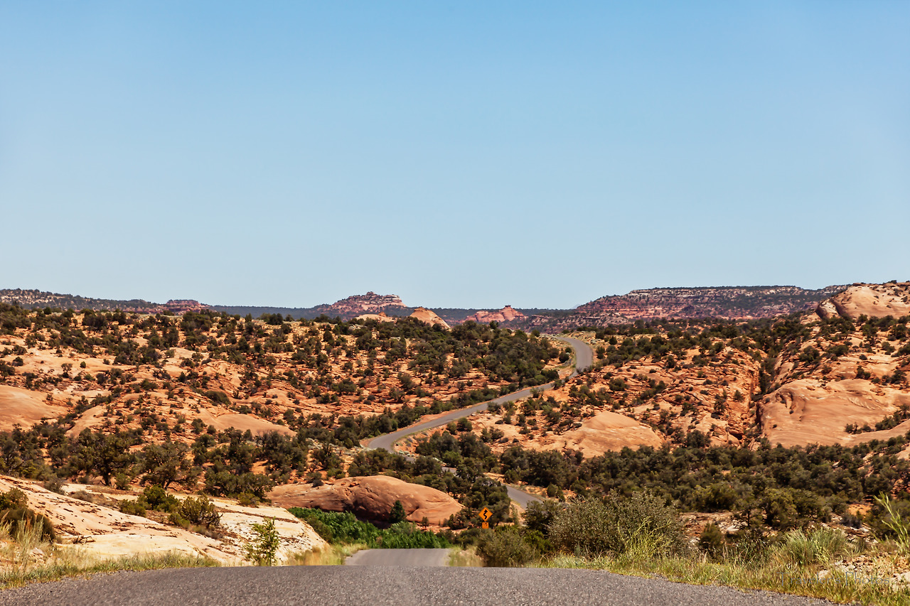 내리막 길을 다 내려가서 어느 만큼 가다 보면 주변의 경치는 '와!'하는 감탄사를 연발할 정도로 압도적인 경치가 나타난다. 특히 메사(Mesa; 산의 꼭대기는 평탄하고, 언덕은 급경사를 이루는 모양의 산을 말한다. 그랜드 캐년, 캐년 랜즈 등)나 뷰트(Butte; 메사의 침식이 훨씬 더 많이 진행되어 규모가 작아진 산을 말한다. 멀리서 보면 마치 바위 기둥처럼 보이기도 한다. 모뉴먼트 밸리 등)가 곳곳에 있는 굴곡진 지형은 마치 외계의 어느 곳에 와있는 착각을 불러일으킨다.