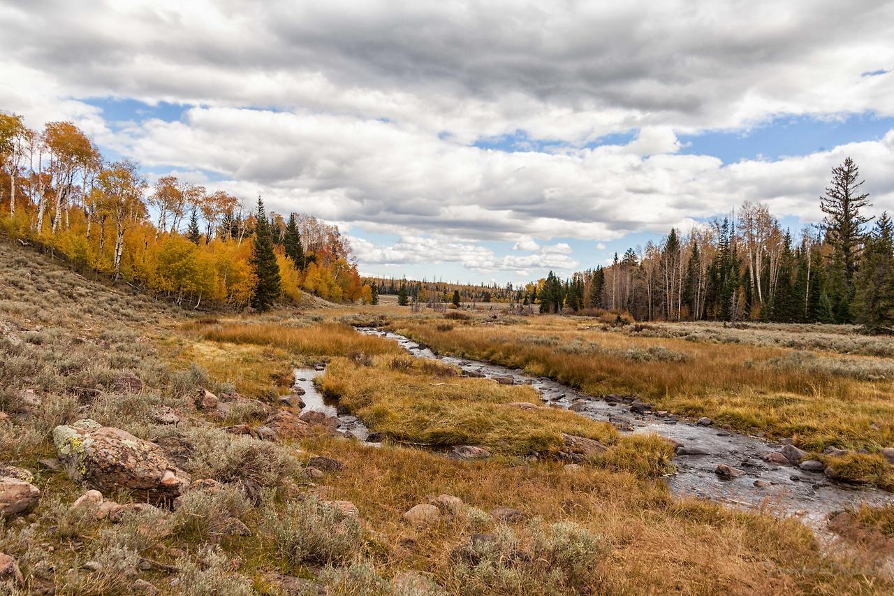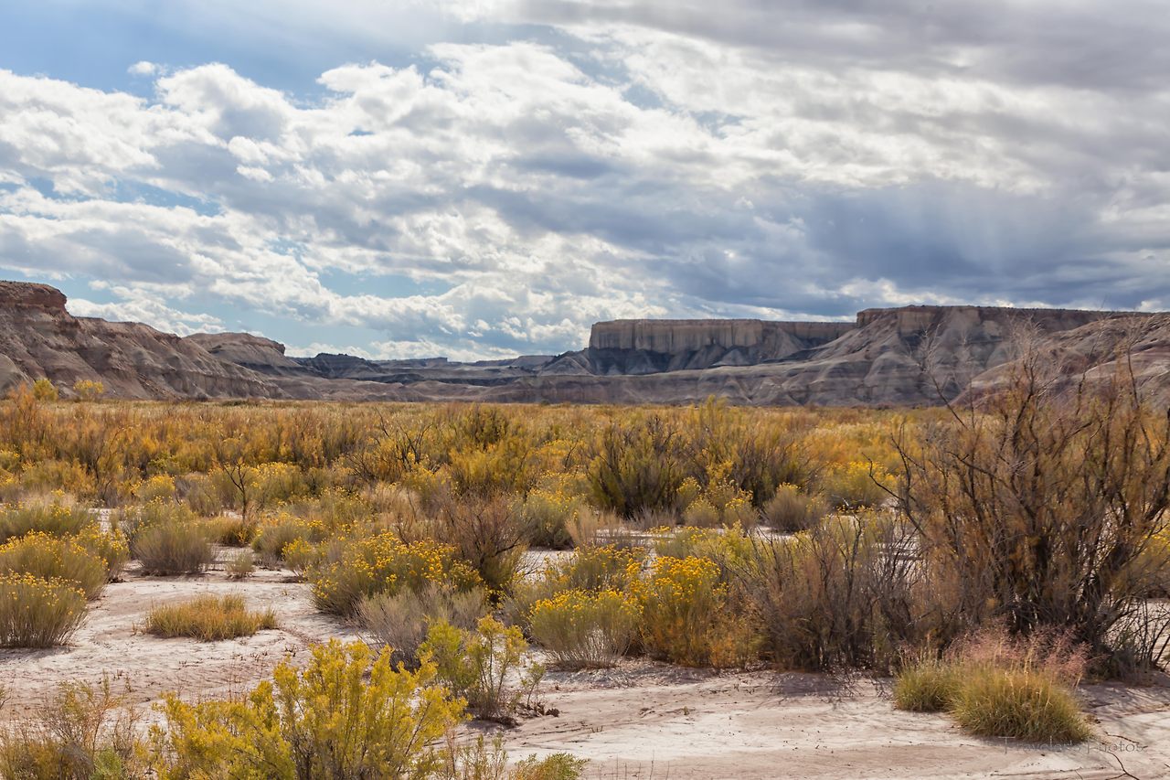 밖에서는 보이지 않던 너른들과 낮은 봉우리, 멀찌감치 보이는 높직한 뷰트(Butte)가 비가 그치고 생긴 옅은 물보라에 가려 마치 동화에 나오는 오래된 성을 보는 것 같다. 길이 몇 구비를 넘자 땅은 느닷없이 드넓은 풀밭으로 바뀐다. 기대하지 않은 곳에서 펼쳐지는 자연이 베푸는 은혜는 그저 고맙게 받아들일 뿐이다. 때 마침 노란 가을꽃이 흐드러진 모습을 보니 계절은 어느 곳이든 어김이 없으려니 한다. 거칠고 메마른 너른들에 돋아난 생명들을 보니 틀림없이 가까이에 흐르는 물이 있겠다. 물이 흐르는 곳은 어김없이 풀이 자라고, 나무가 크고, 갖은 물고기며 물에서 사는 생물들이 번성한다. 그러고 보면 물은 생명의 시작점이 아닐까 싶다.