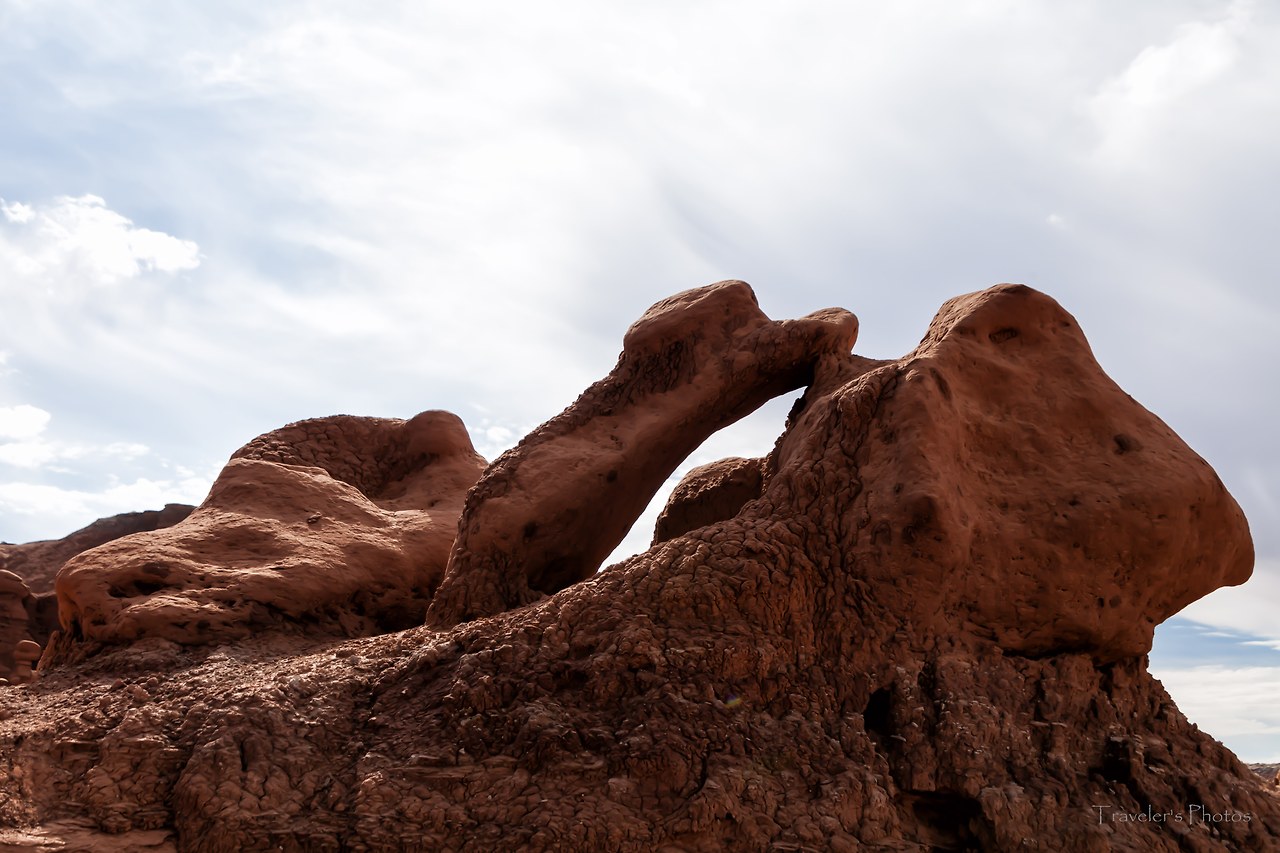 겉보기에는 아기자기하고 별반 볼만한 것이 없을 것 같던 고블린 밸리 주립공원은 안으로 들어갈수록 다양한 표정의 후두들이 순순하게 발걸음을 뗄 수 없게 한다. 공원은 분지 지형에 형성된 후두 군을 돌아볼 수 있게 되어있다. 다른 곳과는 달리 공원 안을 자유롭게 돌아다니며 살펴볼 수 있는 이곳의 후두는 다른 지역에 있는 후두들에 비해서 크기가 작은 것부터 시작해서 그보다 몇 배나 큰 후두까지 크기가 매우 다양하다. 계단을 내려가야 본격적으로 후두 천국을 탐색해 볼 수 있는데, 내려가지 전에 보이는 후두들은 장기판은 너무 작고, 마치 어느 전쟁 영화의 한 장면을 연상케 한다. 비가 왔는데도 이미 많은 이들이 후두 사이를 누비며 즐거운 시간을 보내고 있다. 아이를 데리고 온 가족 단위 여행객들부터 백발의 노부부들까지 나이를 가리지 않은 사람들이 제 나름대로 즐거운 시간을 보내느라 여념이 없다. 그들의 번잡한 공간을 피해 변두리로 돌아 저 멀리 병풍처럼 둘러선 후두들부터 먼저 둘러보기로 했다.