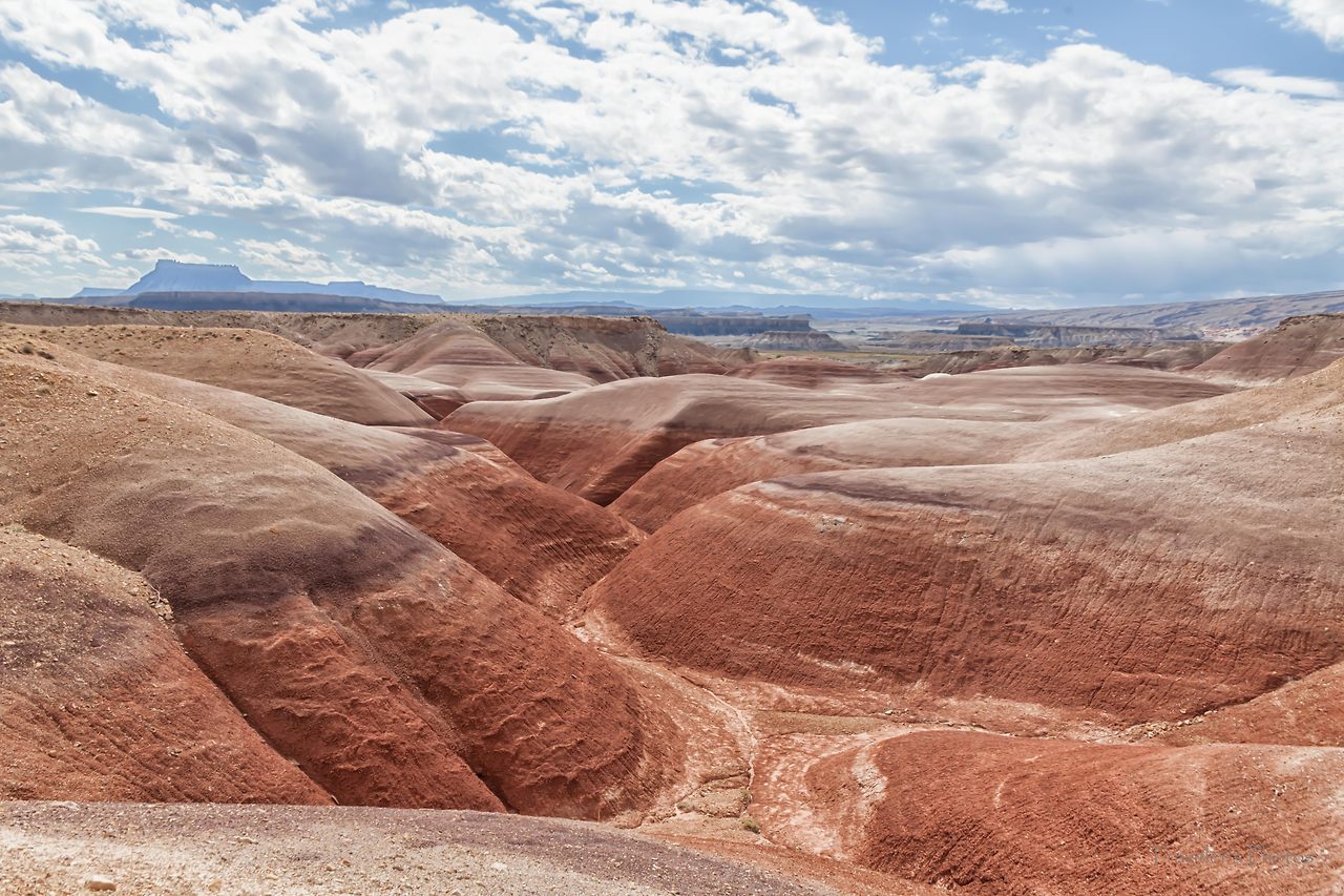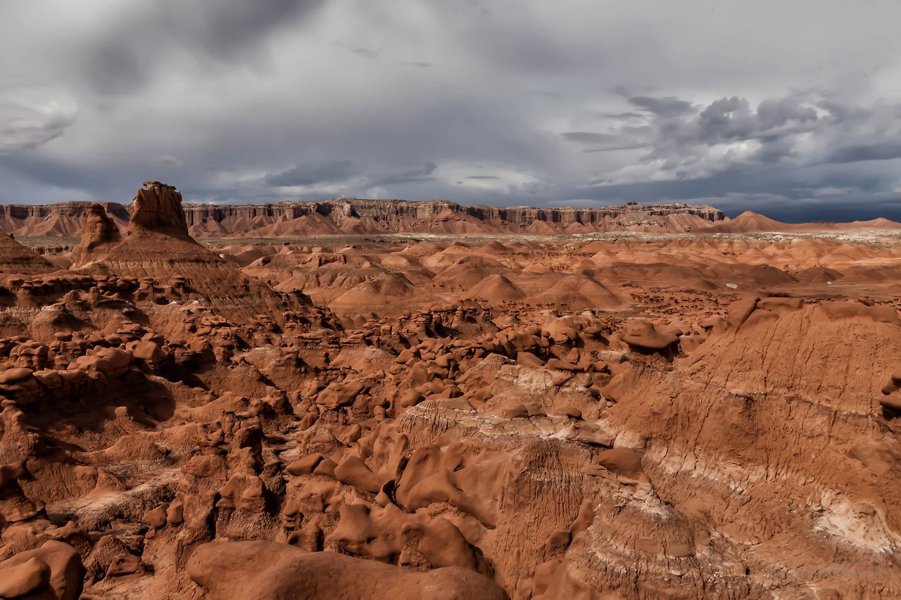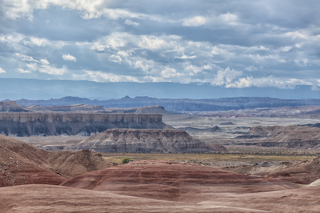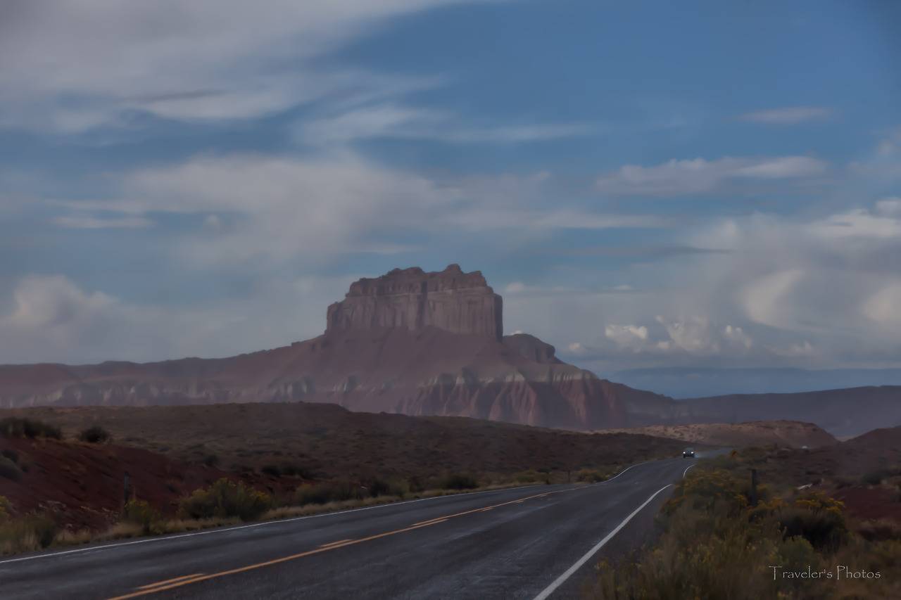 또 한 가지는 고블린 밸리를 방문하고 가려고 했던 오프로딩이 힘들어진다. 진흙밭이 된 길을 들어가는 일은 상당한 모험이 예상된다. 짧은 거리라면 사륜구동의 힘을 믿고 시도해 보겠지만, 수십 마일은 엄두를 내기가 어려운 거리다. 그런데도 언제나 그랬듯이 가던 길을 멈출 수는 없다. 빗줄기는 멈출 줄 모르더니 방문자 센터에 다다르니 언제 그랬냐는 듯 감쪽같이 사라져 버렸다. 대신 하늘엔 서서히 걷히는 구름과 그 사이로 틈틈이 보이는 파란 하늘이 진한 대비를 이룬다. 막상 공원 안에 들어서니 오면서 했던 염려가 기우였나 보나. 일부 질척거리는 부분이 없지는 않았지만, 오히려 비가 내린 흔적이 풍경을 더욱 흥미롭게 만들었다.
