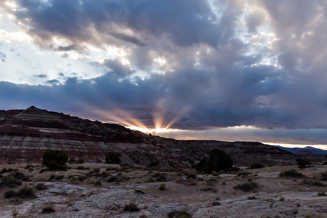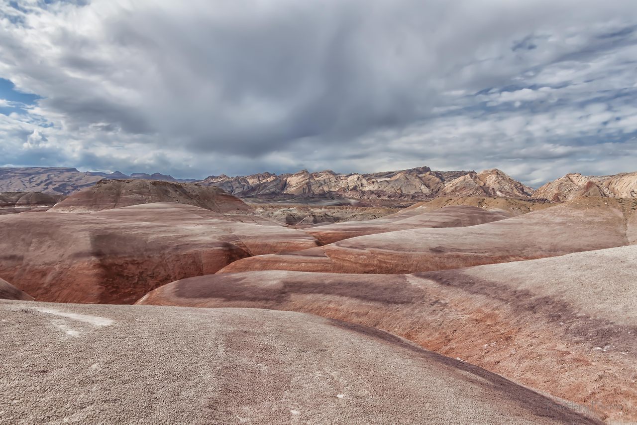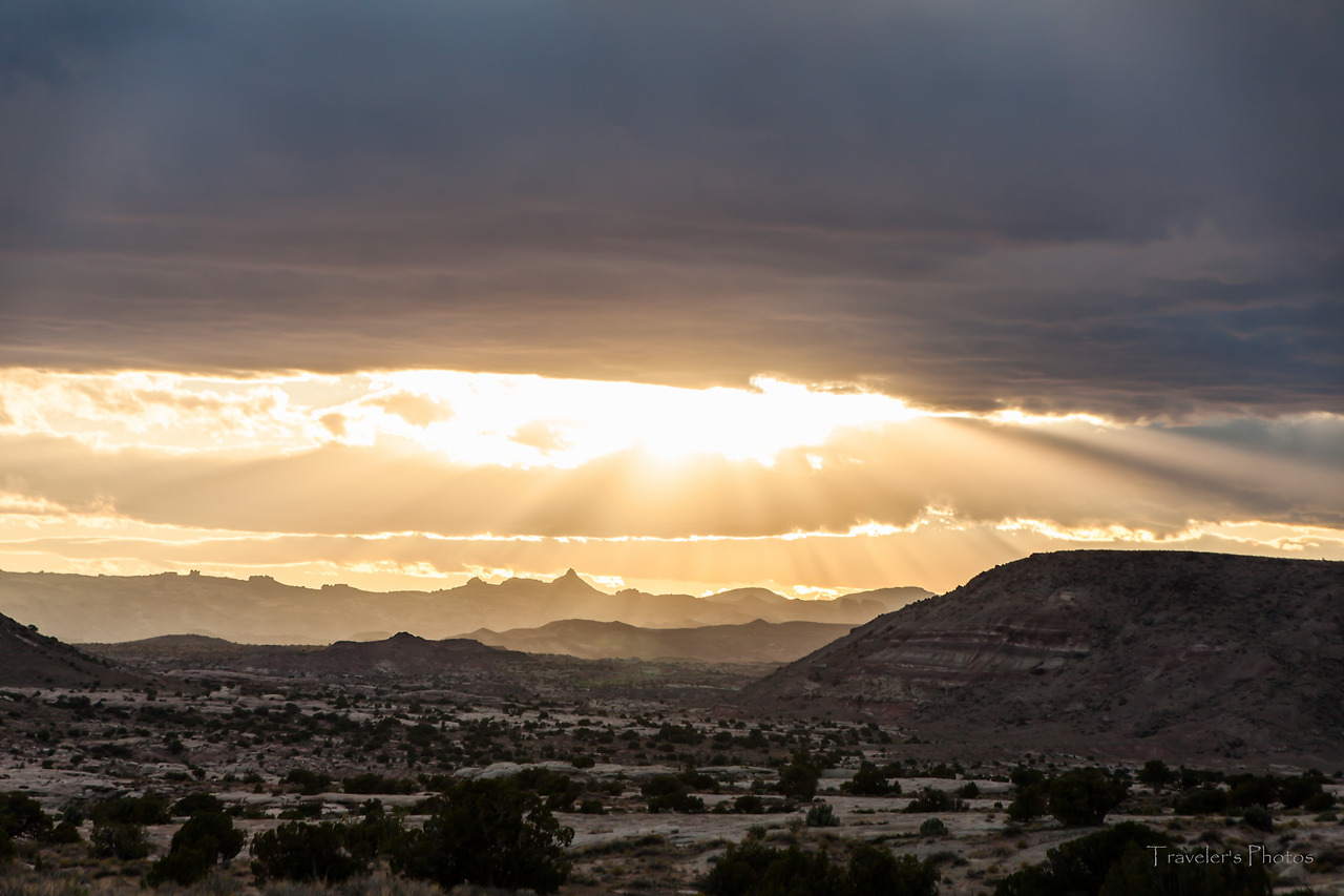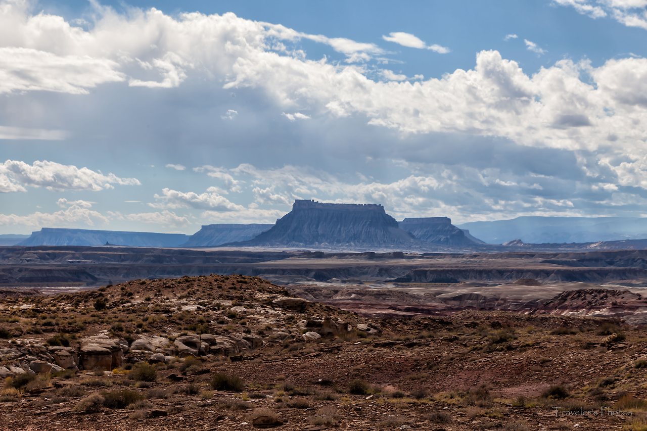 또 한 가지는 고블린 밸리를 방문하고 가려고 했던 오프로딩이 힘들어진다. 진흙밭이 된 길을 들어가는 일은 상당한 모험이 예상된다. 짧은 거리라면 사륜구동의 힘을 믿고 시도해 보겠지만, 수십 마일은 엄두를 내기가 어려운 거리다. 그런데도 언제나 그랬듯이 가던 길을 멈출 수는 없다. 빗줄기는 멈출 줄 모르더니 방문자 센터에 다다르니 언제 그랬냐는 듯 감쪽같이 사라져 버렸다. 대신 하늘엔 서서히 걷히는 구름과 그 사이로 틈틈이 보이는 파란 하늘이 진한 대비를 이룬다. 막상 공원 안에 들어서니 오면서 했던 염려가 기우였나 보나. 일부 질척거리는 부분이 없지는 않았지만, 오히려 비가 내린 흔적이 풍경을 더욱 흥미롭게 만들었다.