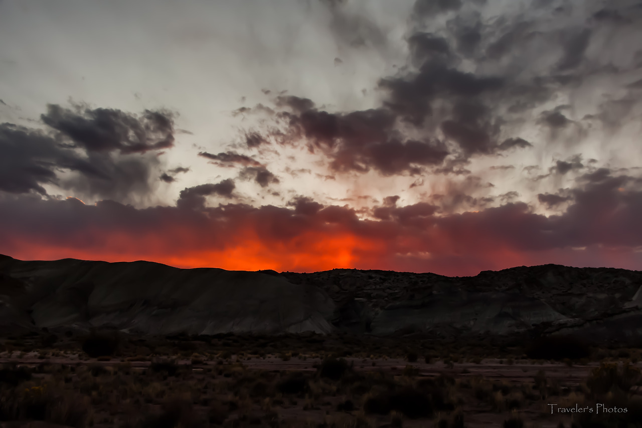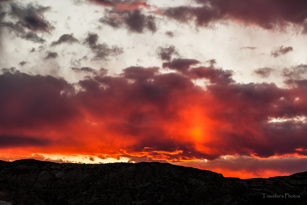 부지런히 달려 막혔던 곳까지 가려고 애는 썼는데 어둑해지는 하늘이 문제다. 기우는 햇살이 그렇지 않아도 멋진 풍경을 더욱더 빛나게 만든다. 더 이상 가기를 멈추고 돌아섰다. 하늘이 펼치는 빛 잔치가 갈길 바쁜 나그네의 발목을 잡았기 때문이다. 천천히 속도를 늦추고 길어지는 산 그림자를 밟으며 서녘 하늘을 바라봤다. 어느 여행지에서든 이 시간이면 늘 서쪽을 향했다. 가던 방향이 아니면 돌아서서라도 지는 해가 만들어내는 아름다운 하늘을 바라보지 않을 수가 없었다. 이날따라 하늘은 남달리 붉게 물들었다. 떨어지는 햇살이 천천히 땅거미를 드리우자 산봉우리는 마지막 불꽃을 태우려는지 거친 들을 달려 저 멀리 땅끝까지 한걸음에 다다른다. 순식간에 불길은 산을 휩싸더니 이내 빠르게 사그라든다.