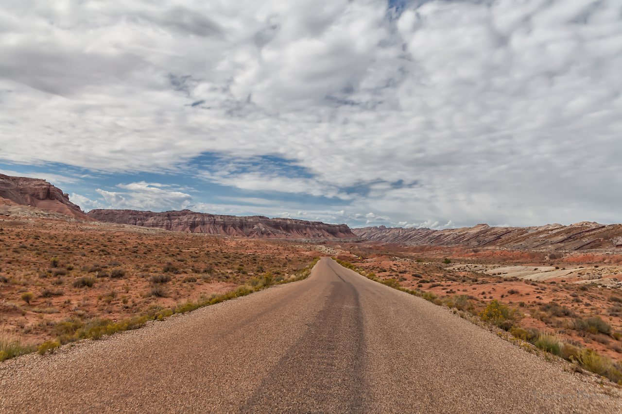 길은 '리틀 와일드 호스 캐니언과 벨 캐니언(Little Wild Horse Canyon and Bell Canyon)'으로 들어가는 주차장을 지나면서 시작한다. 이 캐니언은 미국에서도 손꼽히는 좁은 계곡(Slot Canyon)으로 이름나 있다. 여기를 다녀오는 것도 욕심을 냈지만, 들어가는 곳에 있는 안내판을 보니 꼬박 하루가 걸리는 거리라서 다음 기회로 미룰 수밖에 없었다. 고블린 밸리 주립공원에서 이곳까지는 포장된 도로로 오면 된다. 이곳을 지나면서부터 길은 포장되지 않은 데다 잘 다져놓지도 않아 몹시 울퉁불퉁하다.