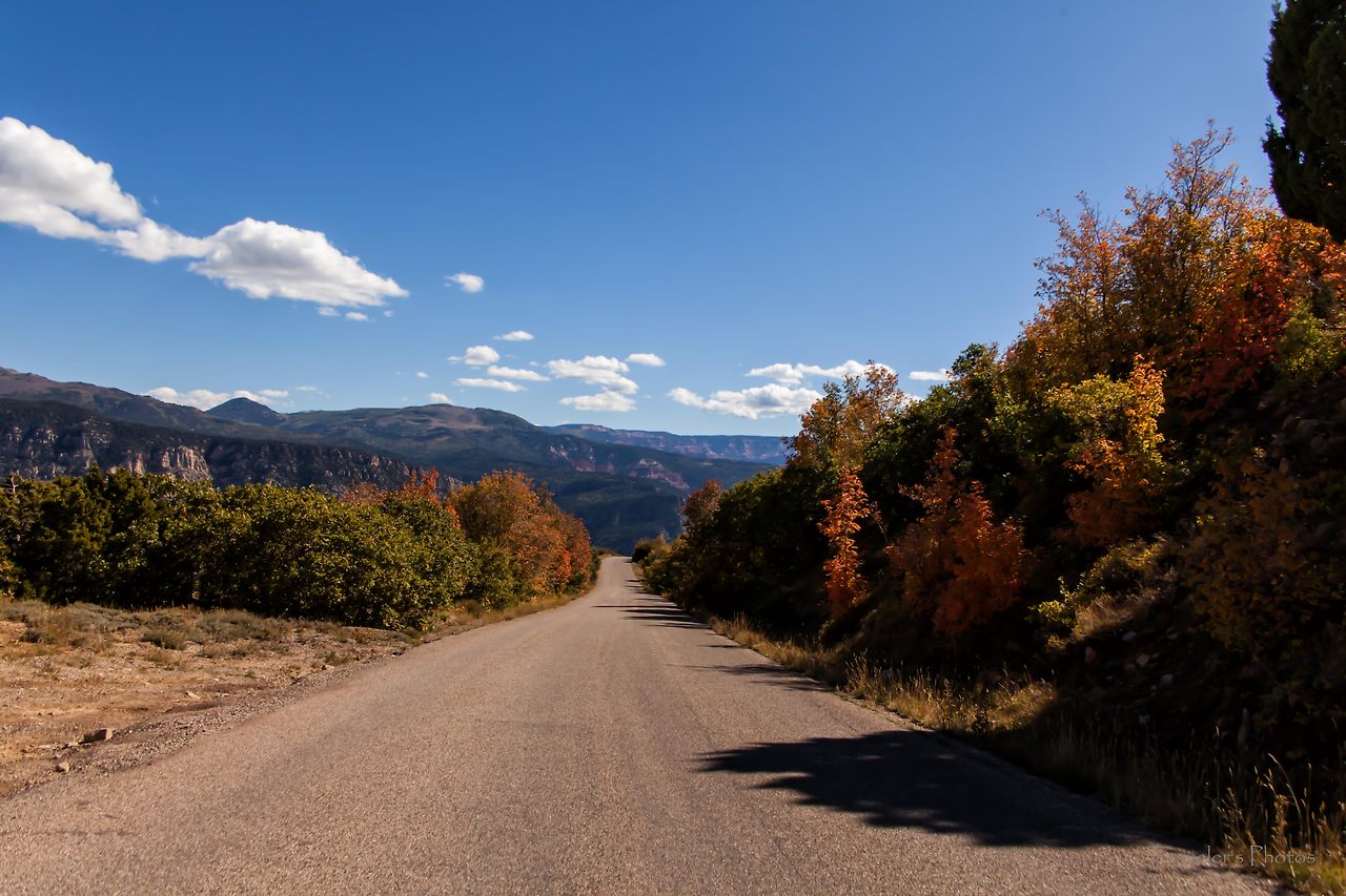 굽이굽이 산길을 오르내리다 보니, 제법 높직한 곳에 마련된 전망대가 보인다. 그냥 갈 수는 없다. 주변이 훤히 보이는 꽤 좋은 위치에 있는 전망대라서 망원경으로 주변을 탐색해 본다. 저 멀리 자이온 국립공원도 보일 만큼 전망이 좋다. 어느 틈엔가 이미 이산 저산 구석구석 널찍하게 가을이 자리를 잡았다. 멀리서 보기에는 그리 예뻐 보이지 않던 빛깔이 망원경으로 가까이 당겨보니 이미 이곳에는 가을이 깊다.