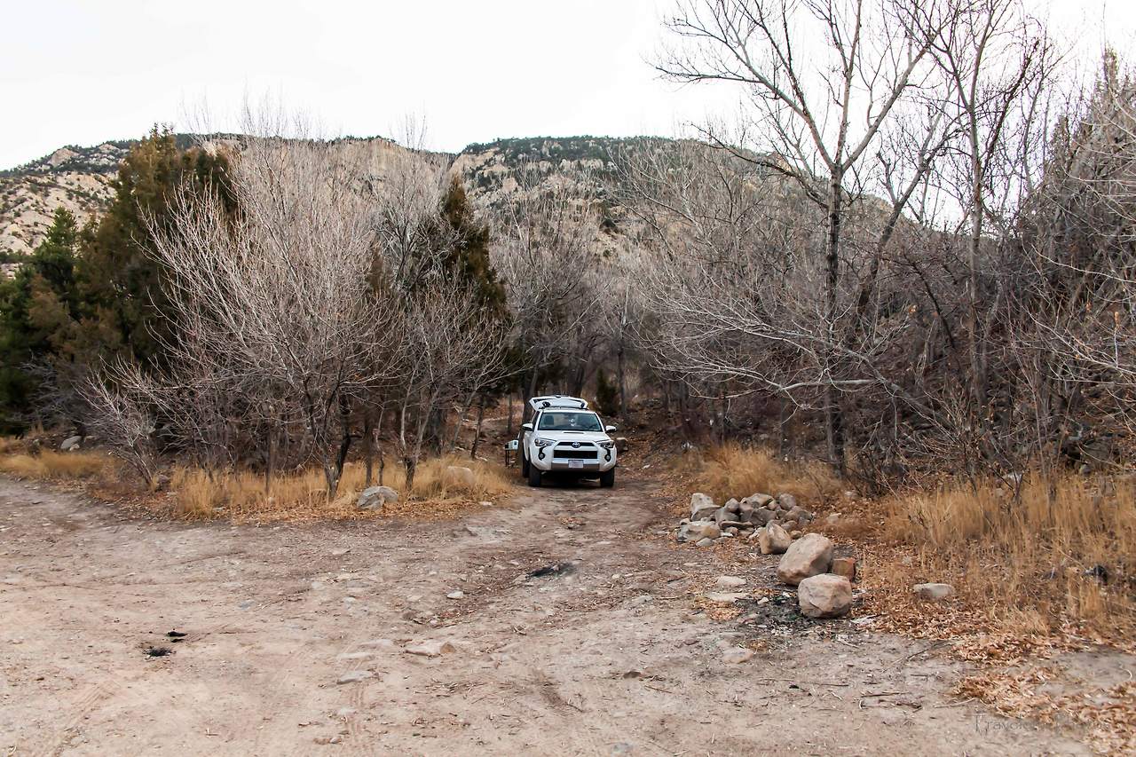 우여곡절 끝에 도착한 야영장은 벌써 다 찼다. 오는 동안 '설마... 한 자리 정도는 남아있겠지?' 은근하게 기대하고 왔는데, 그만 다 차 버렸다. 아직 봐 둔 곳이 또 남아있으니, 희망은 잃지 말자. 문제는 시간이다. 이미 기울어진 산간지역의 해는 잠시 한눈파는 사이에 이미 서산에 걸쳐있고, 갈 길은 멀고, 잠자리는 잡히질 않고, 노숙을 하자니 공원 내에서는 그것도 허용되지 않는다. 그래도 어쩌겠는가? 일단은 '차선책'을 향해 가는 수밖에. 공원을 벗어나 지나가다 보니 길가 으슥한 곳에 간간히 RV들이 서 있는 것이 눈에 띈다. 처음 몇 대는 그냥 지나쳤지만, 갑자기 '뭐지?', '혹시 저기서 자는 걸까?'하는 생각이 든다. 혹시나 하는 생각에 눈에 띄는 비포장 길로 접어들었다. 안으로 좀 들어가 살펴보니, 비포장 도로 옆으로 널찍한 공간이 있고 야영을 했던 흔적이 보인다. 불을 피운 흔적도 있다. '옳거니, 바로 여기다!'.