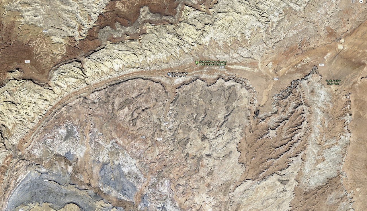이름이 어찌 생겼는지 알 길이 없지만 아마도 옛날에 야생마들이 다니던 길목이었거나, 주변에 그런 길이 있었을 것이다. 미국 사람들이 보통 이렇게 길 이름을 짓기 때문이다. 여기는 지도를 보다가 알게 되었다. 구글 지도, 특히 위성 지도나 구글 어스를 이용해 검색하다 보면 특이 지형이나 경관이 괜찮아 보이는 곳을 발견할 수 있는데, 사람들이 관심을 두는 지역이라면 사진이 올라와 있는 경우도 있어서 그곳의 사정을 미리 알아볼 수 있다. 위성 지도나 구글 어스는 여행자들에게는 참 고마운 프로그램이 아닐 수 없다.