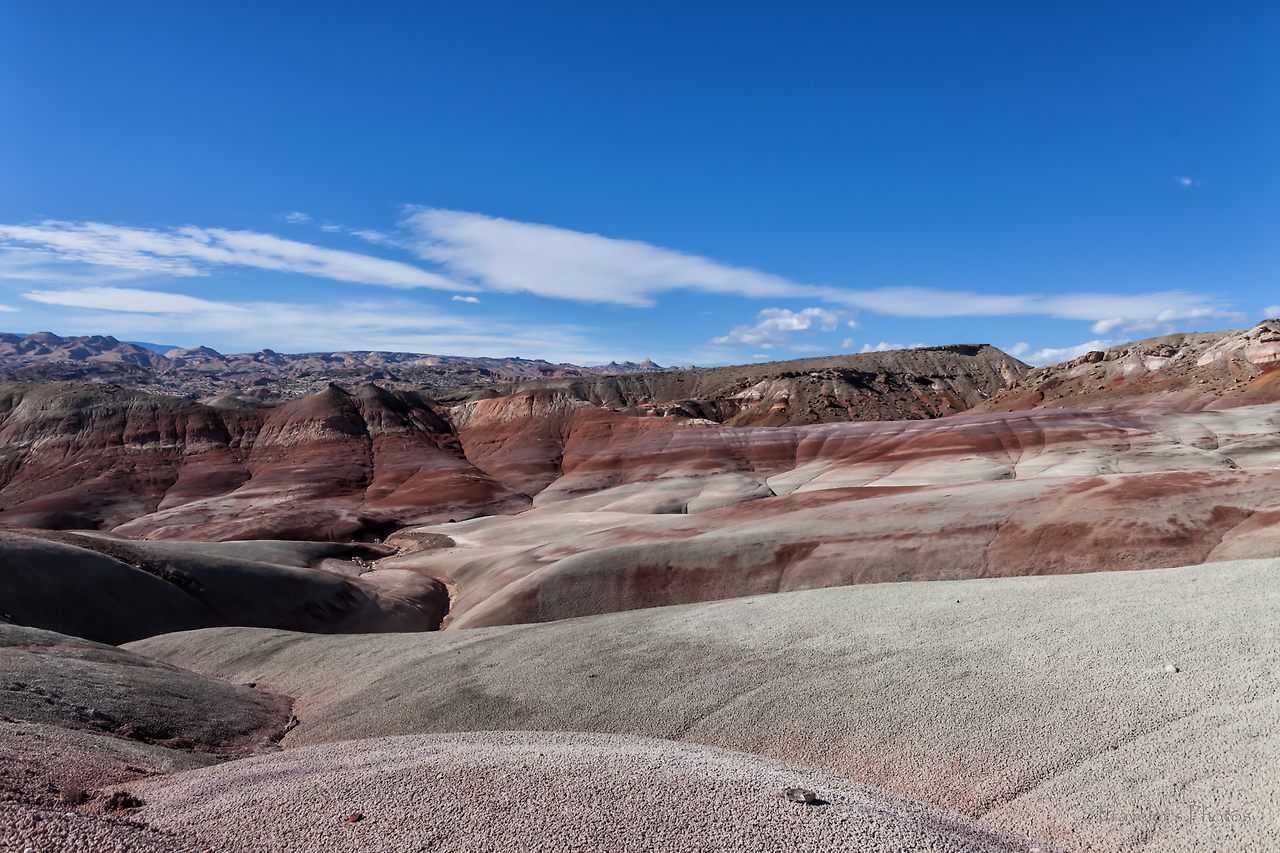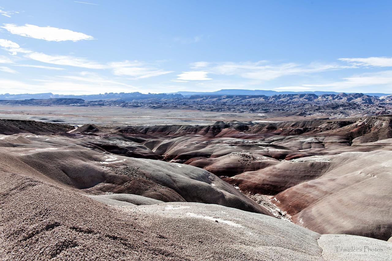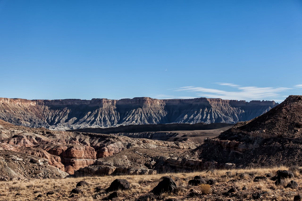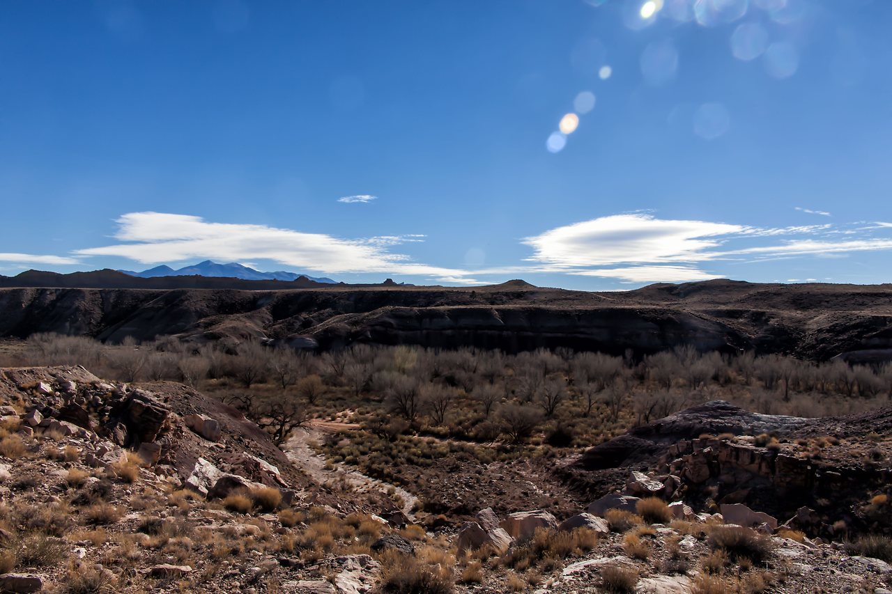 황량하고 지루한 길을 한 시간 여 달리다 보면 등장하는 전망대가 있다(Lower South Desert Overlook). 유타 남서부의 전형적인 모습을 보여주는 황토 지형이 널찍한 분지 위에 펼쳐져있다. 캐피톨 리프 국립공원의 다른 지역과 비슷하면서도 온통 황토 일색인 방문자 안내소 인근의 풍경과는 빛깔부터 좀 달라 보인다. 드넓은 평지를 달리다 느닷없이 펼쳐지는 이런 풍경과 마주할 때면 자연에는 우리가 모르는 또 다른 힘이 있지 않을까 하는 생각을 하게 된다.