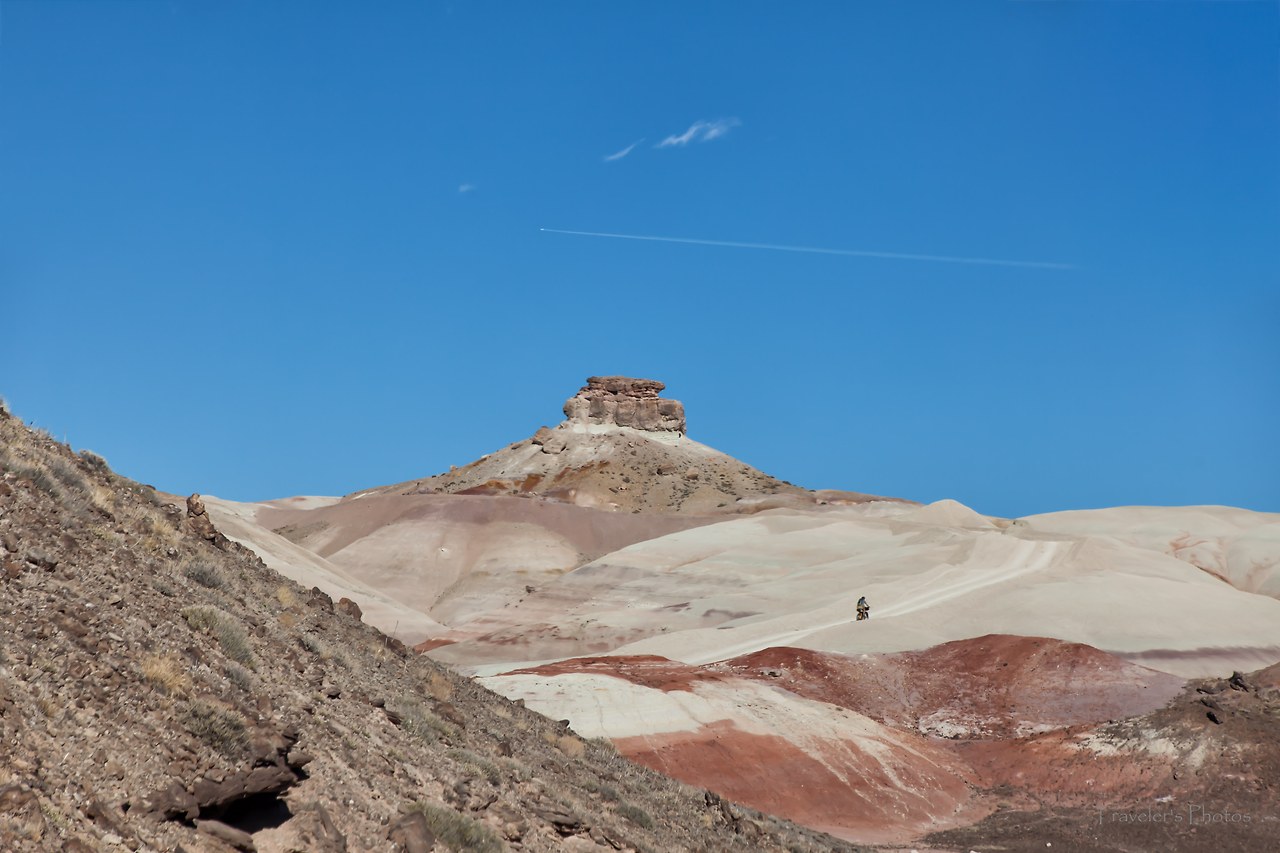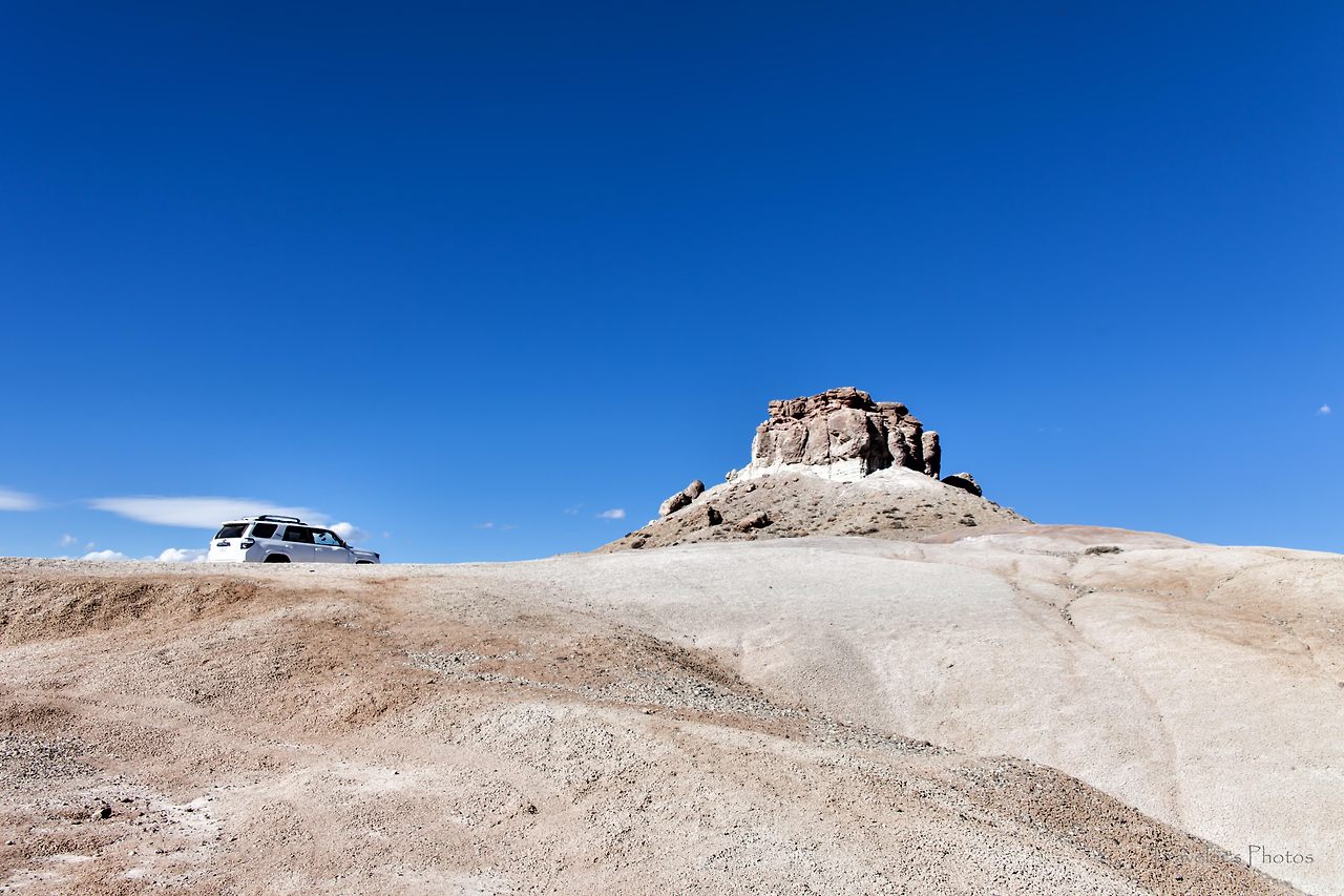 그러나 탐험이 언제나 즐겁지만은 않다. 땅은 드넓어 끝이 어딘지 내다보이질 않고, 저 멀리 둘러선 산들이 이곳이 분지 지형임을 알게 해 준다. 끊임없이 길을 달리노라면 뒷거울에 비치는 뽀얀 먼지와 저 밑으로부터 전해지는 묵직한 흔들림이 이 길이 비포장이라는 것을 실감케 한다. 가까이에 눈에 띄는 지형이 사라진 드넓은 황무지에서 드는 생각은 '도대체 풀 한 포기 자라기 어려운 이런 땅에 길을 낸 까닭이 무엇일까?'라는 의문이었다.