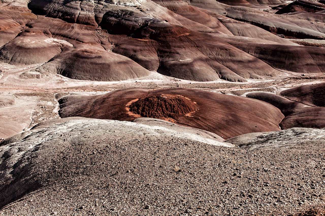 '아!'하는 짧은 신음을 내뱉는 것 말고 달리 할 말이 없다. 로우어 전망대와 연결되는 것 같은데, 로우어가 서론이라면 이곳은(Upper South Desert Overlook) 본론에 해당하는 듯 보인다. 부드러운 모래가 깔려있는 것처럼 보이는 바닥은 자세하게 보면 모래가 아니다. 빗물이 흐른 자국이 있고, 듬성듬성 키 작은 나무들이 자라고 있다. 그저 평온해 보이는 곳도 가까이 다가가 살피면 그곳은 또 그 나름대로 치열한 생존의 몸부림이 있다.