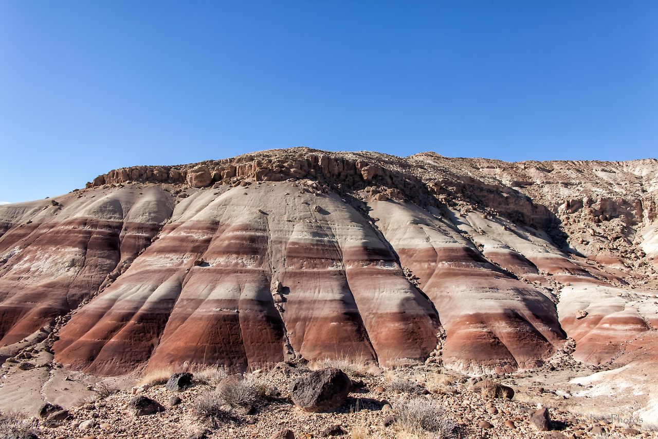 이곳의 지형은 다른 곳과는 많이 다른 모습을 보여주고 있는데, 눈을 돌려 사방을 살피면 금세 알아차릴 수 있다. 한쪽으로는 높이 솟은 봉우리가 있는가 하면, 한쪽에는 높고 평평한 메사가 널찍하게 펼쳐져 있다. 그 한옆으로는 긴 세월의 흔적을 볼 수 있는 뷰트가 듬성듬성 서 있고, 그들 틈새로 그들과는 또 다른 빛깔과 모양을 지닌 지형이 자리 잡고 있다.