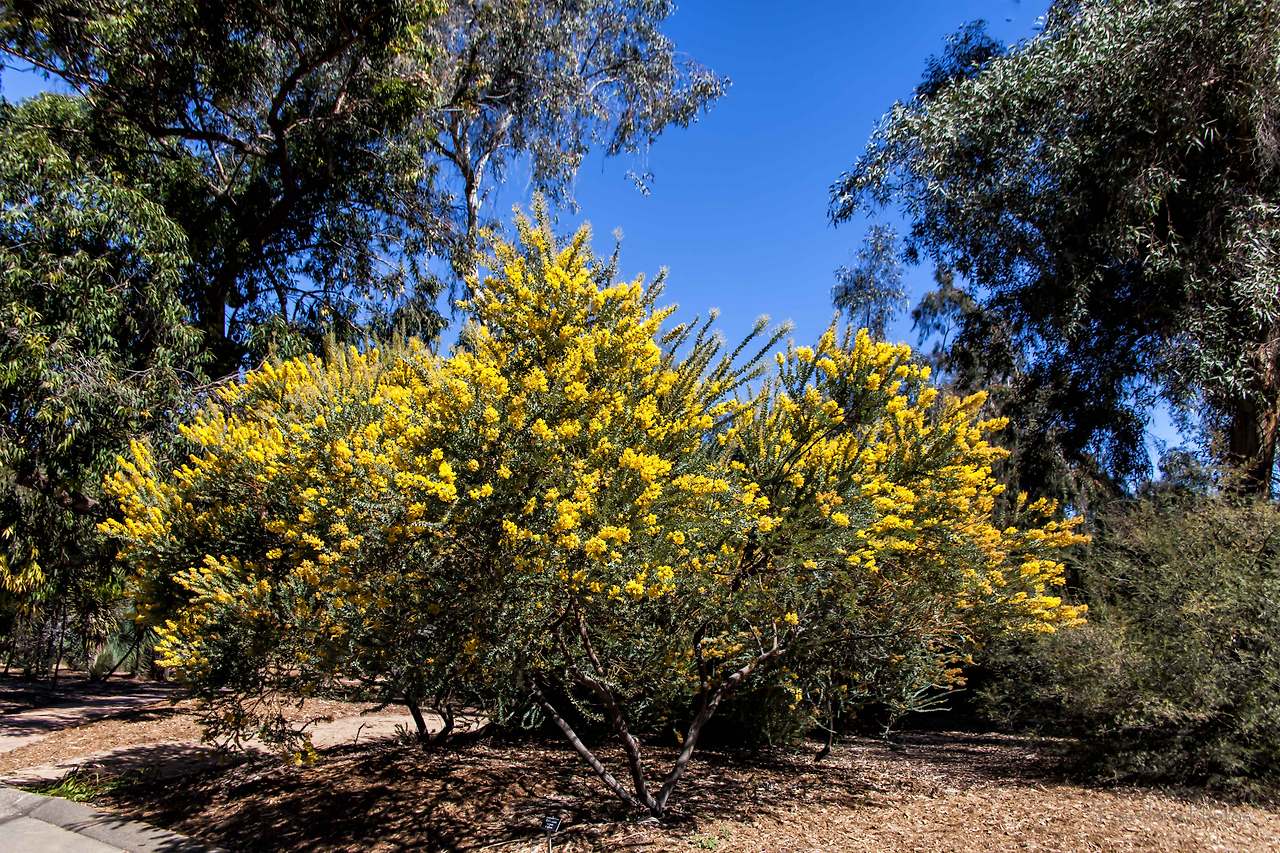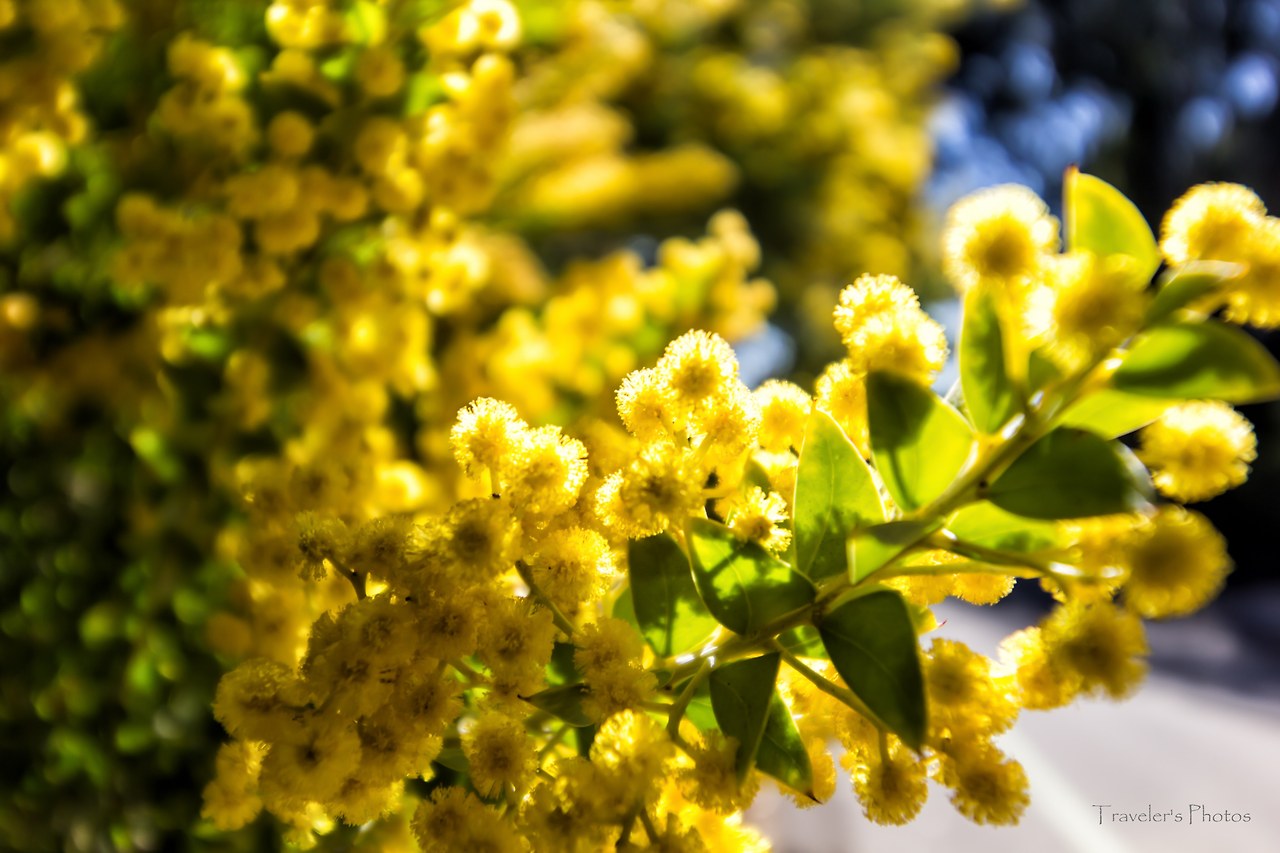 이 꽃은 아카시아의 한 종류다. 우리가 흔히 알고 있는 흰색 꽃을 피우는 아카시아와는 다른 종류다. 아카시아는 아카시아 속에 속하는 970여 종의 상록 교목의 총칭이고, 콩과에 속한다. 한반도에 분포되어있는 아카시아는 이와는 다른 아카시아 나무속에 속하는 낙엽교목이다. 이 꽃의 정확한 이름은 Knife Accacia며, 학명은 Accacia cultriformis고, 흔히 개 이빨 풀(dogtooth wattle), 반달 풀(half-moon wattle) 따위의 이름이 있다. 개나리가 흐드러진 봄이 떠올라서 그런지는 모르겠지만, 노랑은 봄을 생각나게 하는 빛깔 가운데 하나다. 이 꽃을 봄으로써 비로소 이 수목원에도 봄이 왔구나 하는 생각이 들기도 한다.
