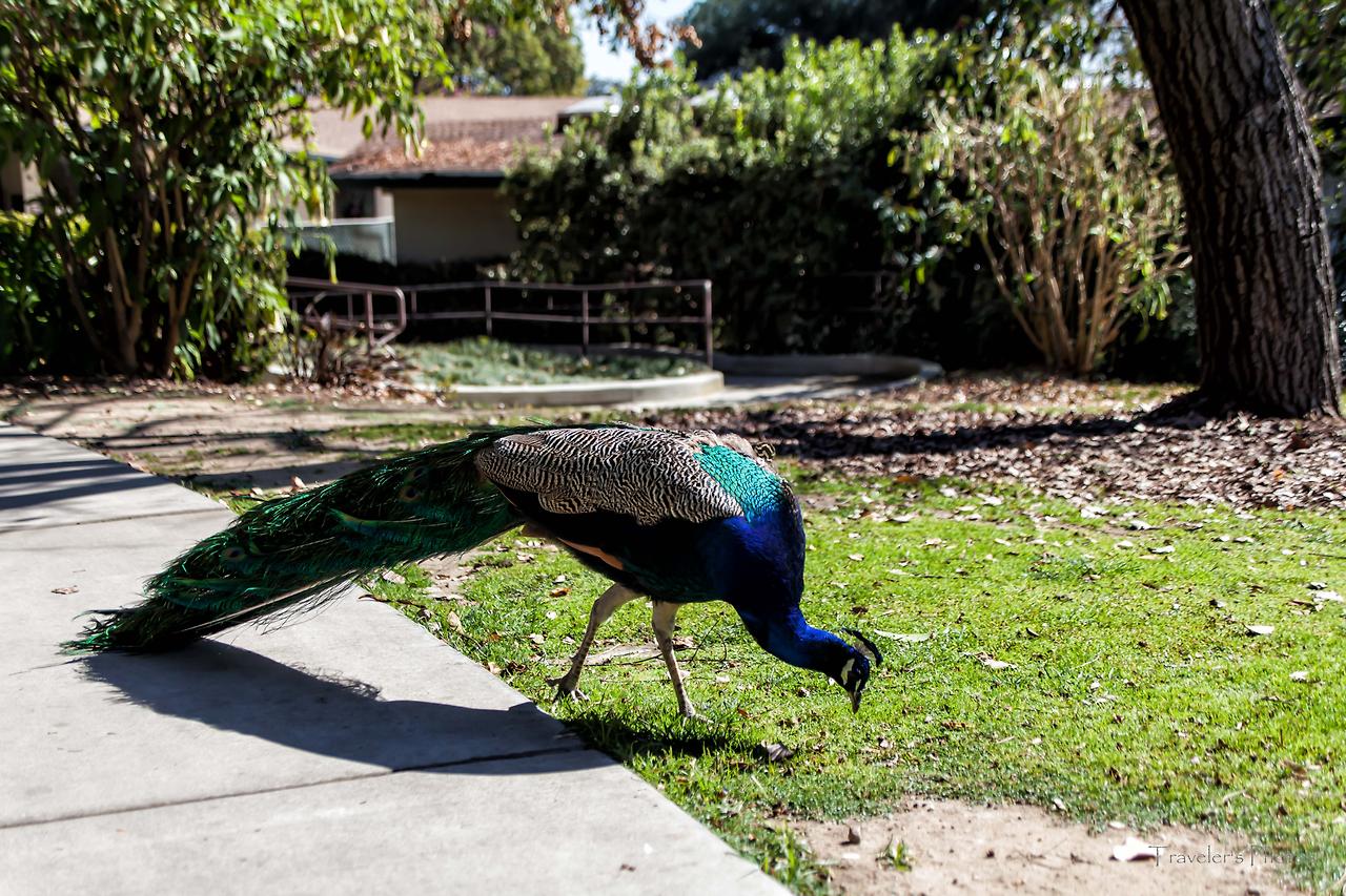 여기에 사는 공작은 청공작 또는 인도공작으로 모두 몇 마리가 있는지는 알아보질 못했지만, 공원 안을 걷다 보면 아주 흔하게 만날 수 있을 정도로 개체수가 많다. 이들에게 귀소 본능이 있는지 공원 안의 공작은 집에서 기르는 닭처럼 그저 어슬렁 거리며 모이를 주워 먹거나 그늘에 들어 낮잠을 자거나, 그도 아니면 남의 집 담장에 올라 이웃집을 넘나들거나 꺽꺽거리며 동료를 부르기도 한다. 사람이 다가가도 도망을 하지 않으니 처음엔 가까이 가다가 주춤하기도 했다. 아쉬운 것은 아직 짝짓기 철이 아니라서 깃을 펼치는 장면을 보지 못한 것인데, 4월쯤 가면 깃을 펼치며 구애하는 장면도 목격할 수 있다고 한다.