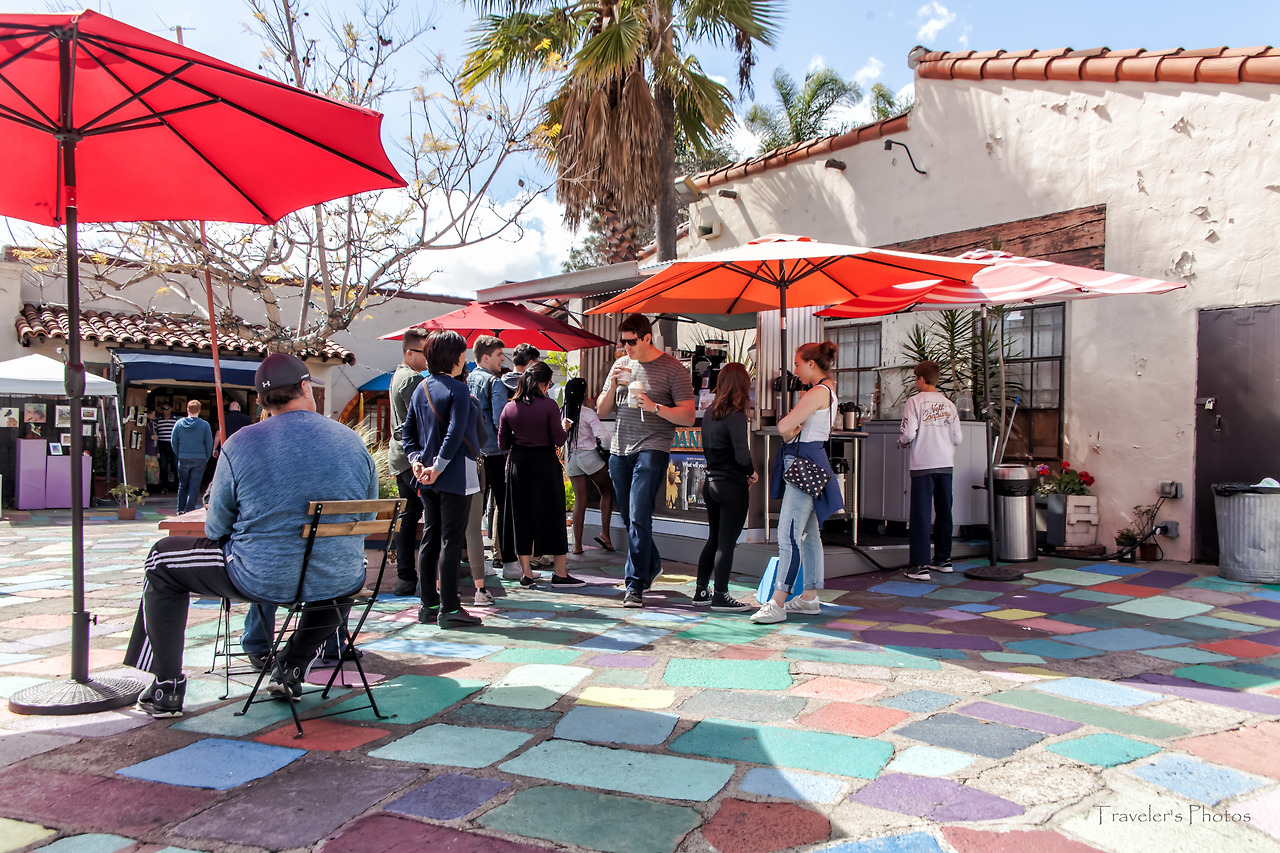 이 거리에 처음 발을 딛는 순간 가장 눈에 띄는 것은 바닥 장식일 것이다. 안으로 들어갈수록 원색적인 건물들이 눈에 띄기는 하겠지만, 뭐니 해도 첫눈에 들어오는 것은 바닥에도 칠을 해놓아서 평범하기만 한 재료를 좀 특별하게 보이게 만들었다. 한집 한집 살피다 보면 벽돌 위에 걸어놓은 그림이라든가, 가정집 대문처럼 보이는 곳을 이용해 진열해 놓는 등, 이곳에 있는 사람들의 재기 발랄을 엿볼 수 있다. 다들 예술가의 감성을 가지고 있을 테니 무엇 하나 허투르게 지나가는 법이 없이 놓여있는 탁자 하나, 의자 하나까지 세심하게 고려한 흔적이 역력하다. 하다못해 세월이 흐르면 빛깔이 바래고 때가 끼거나 벗겨지는 것들도 함께 어우러졌다.