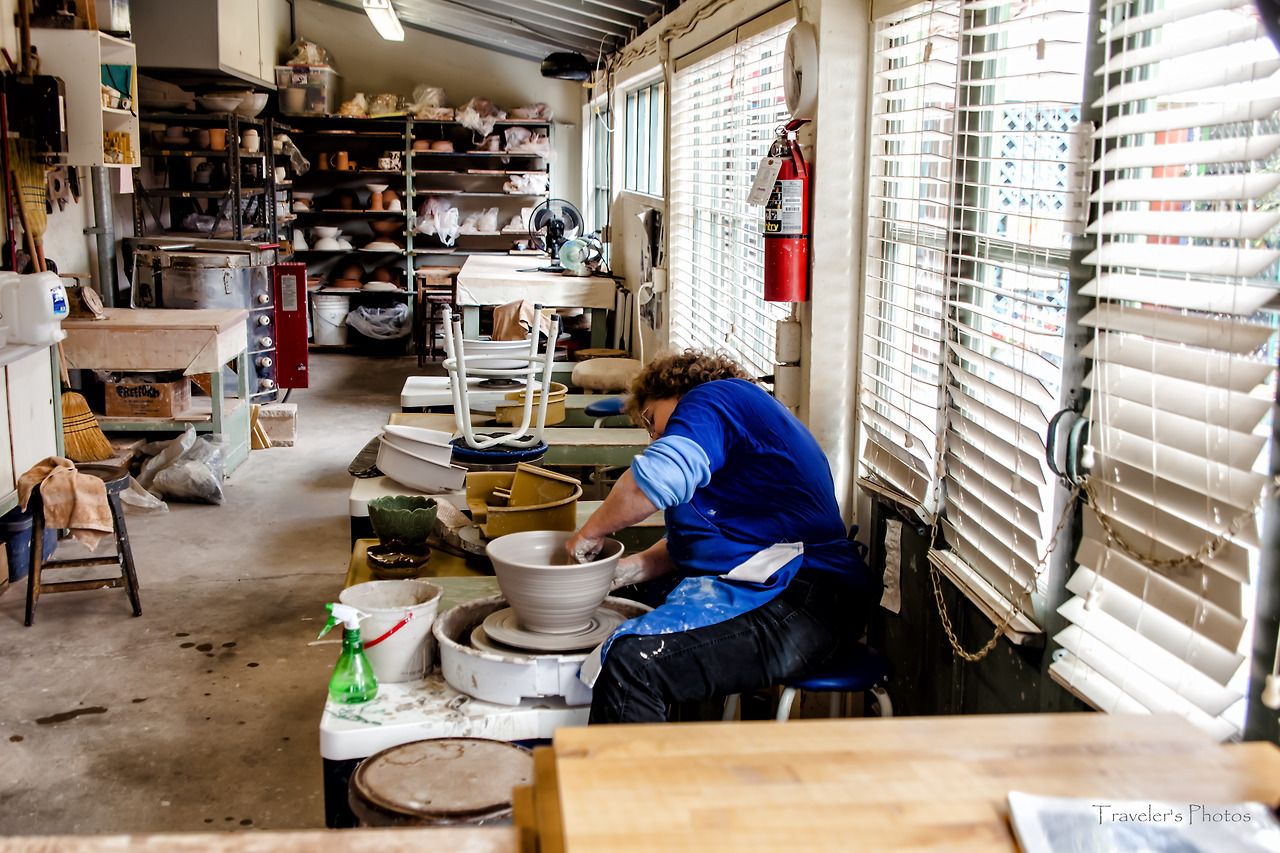 여기에는 이들이 운영하는 공방에서 제품을 직접 주문을 받아 만들어 주기도 하고, 만드는 과정을 보여주며 설명을 곁들이기도 하는 등 사람들이 관심을 둘 만한 요소가 많이 있다. 그런데도 그저 구경삼아 들리는 사람들이 더 많아 보이고, 그나마도 거리가 조금은 한산해 보이는 것은 이 거리가 상업적으로 성공한 것으로 보이지는 않는다. 속으로야 어떨지 모르겠지만, 사람이 많든 적든 이곳의 사람들은 대체로 상냥하다. 미국인들 특유의 친절함이 그대로 녹아있다. 도자기를 빚든 유리를 불든 저들의 작업장은 그들의 성심이 뿜어내는 열기로 가득하다. 자본의 논리로 본다면 이들의 삶은 풍요로워 보이거나 행복해 보이지 않을지도 모르겠다. 끊임없이 자연의 법칙을 거슬러 자신들의 유익함을 위해서라면 다른 생명체의 안위 따위는 안중에도 없는 오만한 인간이 현재의 모습으로 살아가도록 만든 것은 다른 어떤 것도 아닌 인간의 독단, 그 위에 세워진 욕망의 문명일 것이다. 그렇다고 이들이 그 선상에 있지 않다는 것은 아니지만, 적어도 그들이 자신의 작업장에서 어떤 다른 것도 아닌 자신의 빛에 따르는 자세를 취하는 한 그렇게 보인다는 것이다.