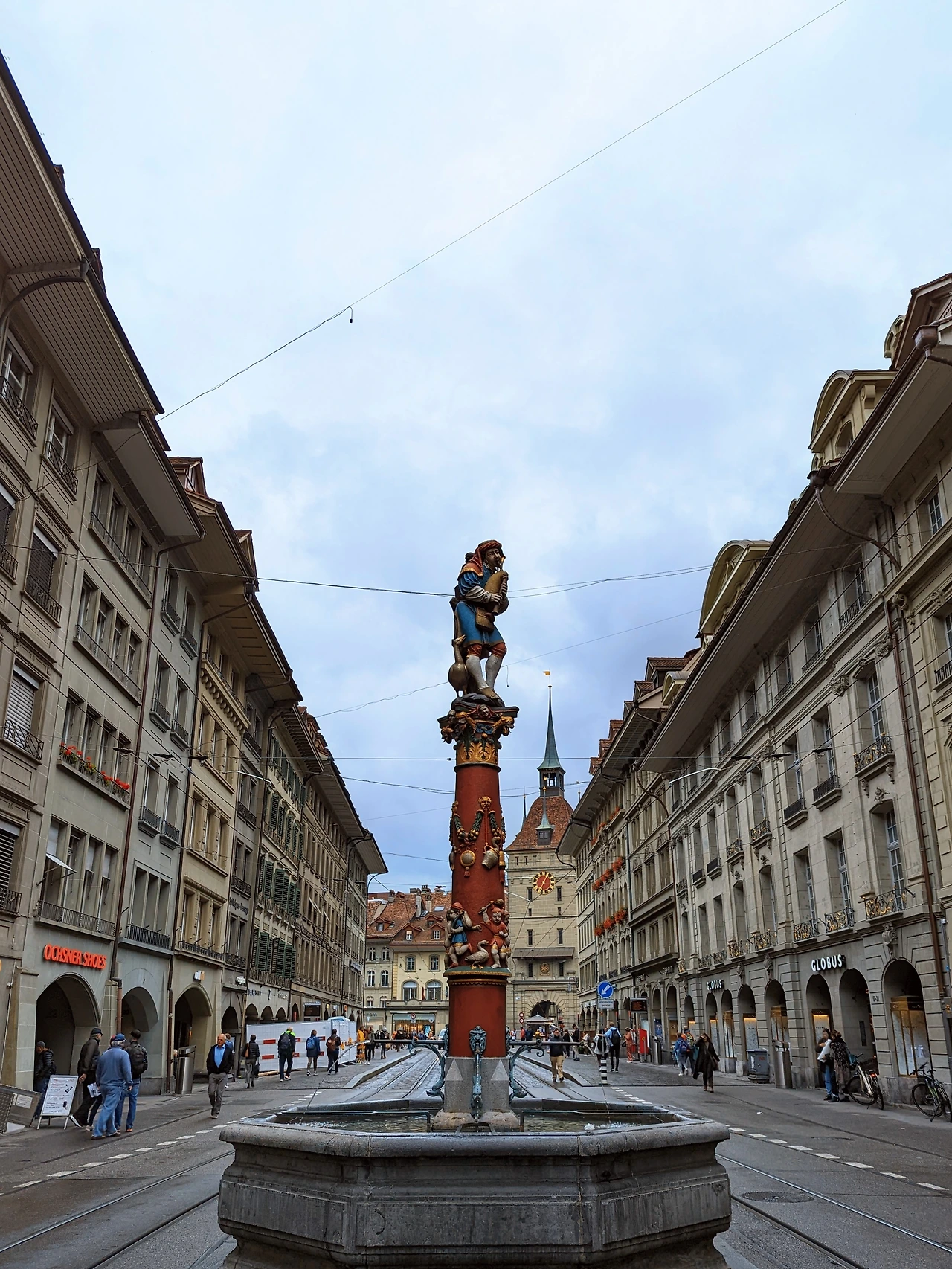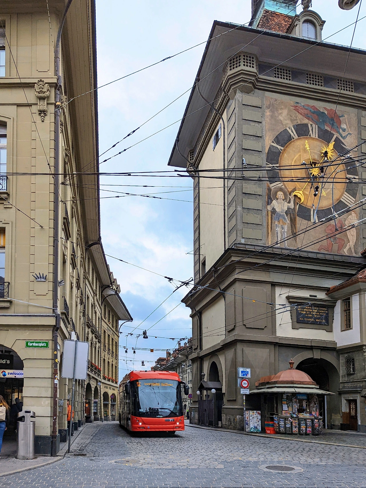 베른의 구시가지 전체가 유네스코 세계문화유산으로 지정되어 있대. 유럽식 건물들에 익숙해져서 별 감흥 없을 줄 알았는데, 확실히 예쁘더라. 건물은 대부분 살짝 노란빛이 도는 회색으로 통일감이 있었고, 중간중간 화려하게 색칠된 분수대가 있었어. 가끔 새빨간 버스가 회색 건물들 사이를 가르고 지나가는데 그 모습도 인상적이었어.