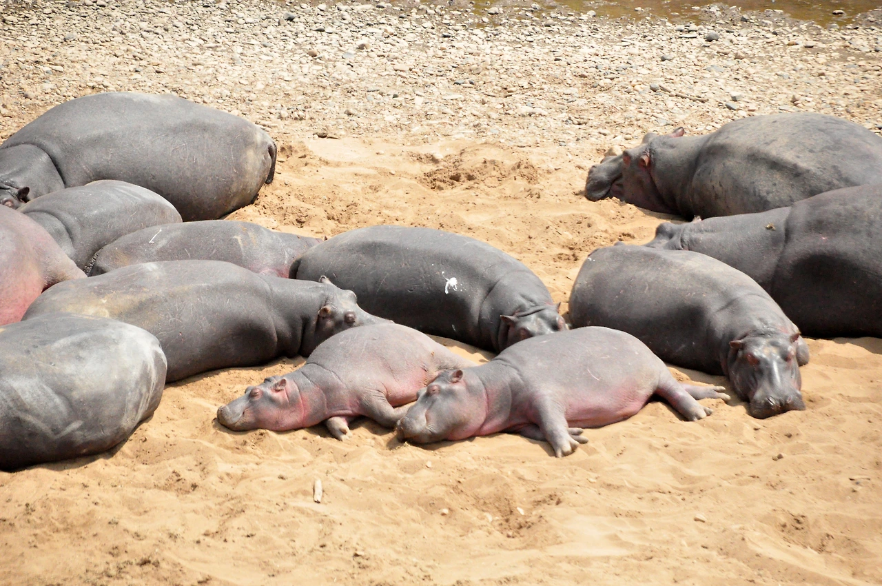 오늘은 어제보다 동물들이 훨씬 더 많이 보였다. 누와 얼룩말이 사방에 쫙 펼쳐져 있는 길을 달린다. 어제 사자가 먹다 남긴 누를 먹고 있는 독수리들도 보이고, 배가 부른 지 배를 까고 자고 있는 정글의 왕 사자도 보인다. 타조도 있었는데 생각보다 훨씬 커서 깜짝 놀랐다. 2미터도 넘는 거 같다. 한참을 더 달려 강가에 도착했다. 강 아래쪽엔 하마 무리가 여유롭게 낮잠을 즐기고 있었다. 저렇게 자다가 일어나 물에 들어가서 몸을 식히고, 또 자고 하나보다. 이렇게 멀리서 보면 귀엽기만 한 하마는(특히 새끼 하마는 색깔도 다르고 다리도 짧은 게 얼마나 귀여운지 모른다) 알고 보면 가장 난폭한 동물 중 하나라고 한다. 여기 마사이마라에선 하마들이 사냥을 하는 모습을 못 봐서 그냥 그런가 보다 했는데 나중에 보츠와나 오카방고 델타에서 하마 두 마리가 싸우는 걸 보고 기겁했다.