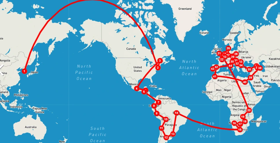 그렇게 완성된 우리의 여정은 북미 -> 중미 -> 남미 -> 아프리카 -> 유럽 -> 아시아 순이었다.