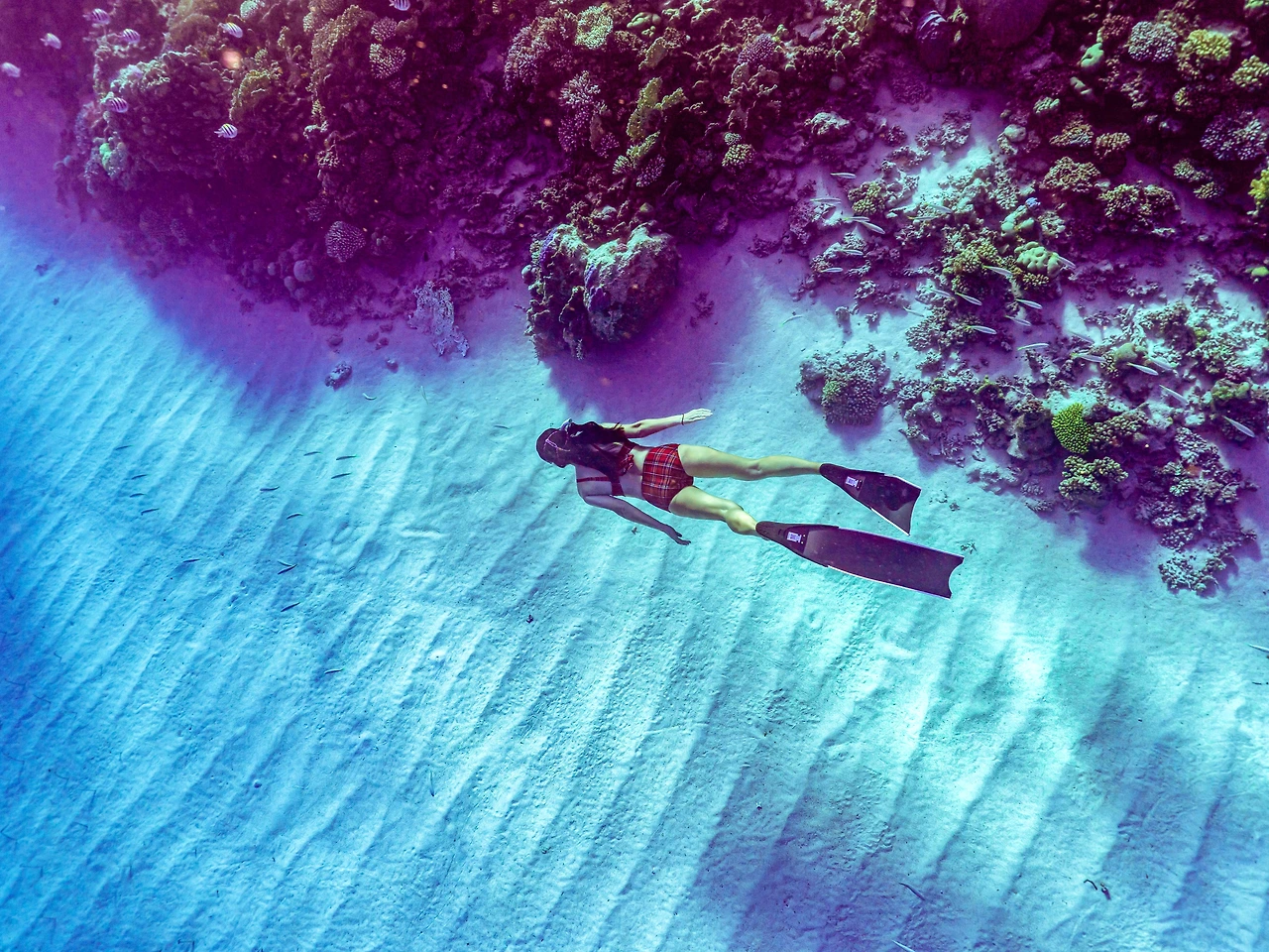 남편은 프리다이빙 강사가 되어 사람들에게 바닷속에서 숨 쉬는 법을 가르치고 있다.