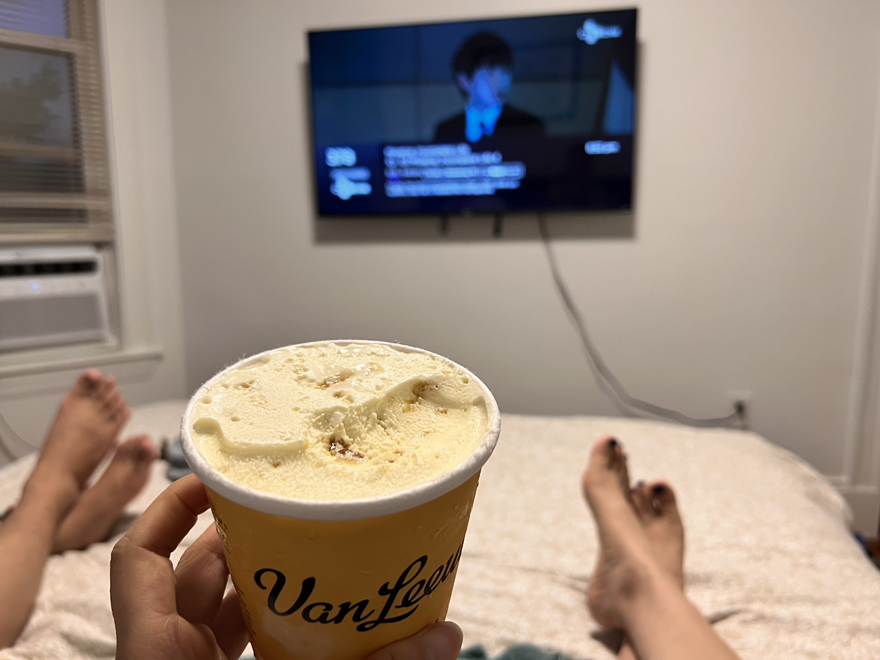 셋이 나란히 침대에 기대어 꿀맛 같은 아이스크림을 먹으며 하루를 마무리했다.