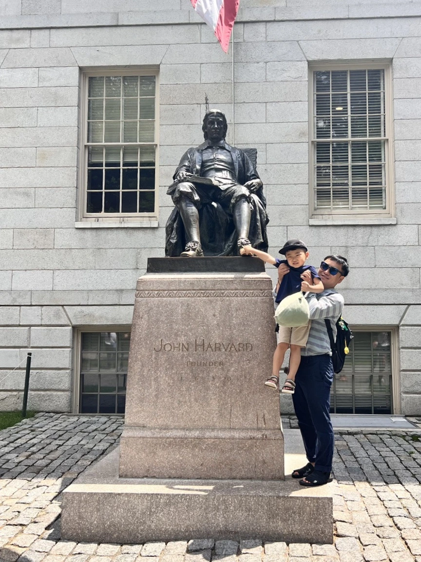 존 하버드 동상 앞에서 가족사진을 찍고, 존 하버드 동상 발을 만지는 ‘관광객 코스’도 잊지 않았다.