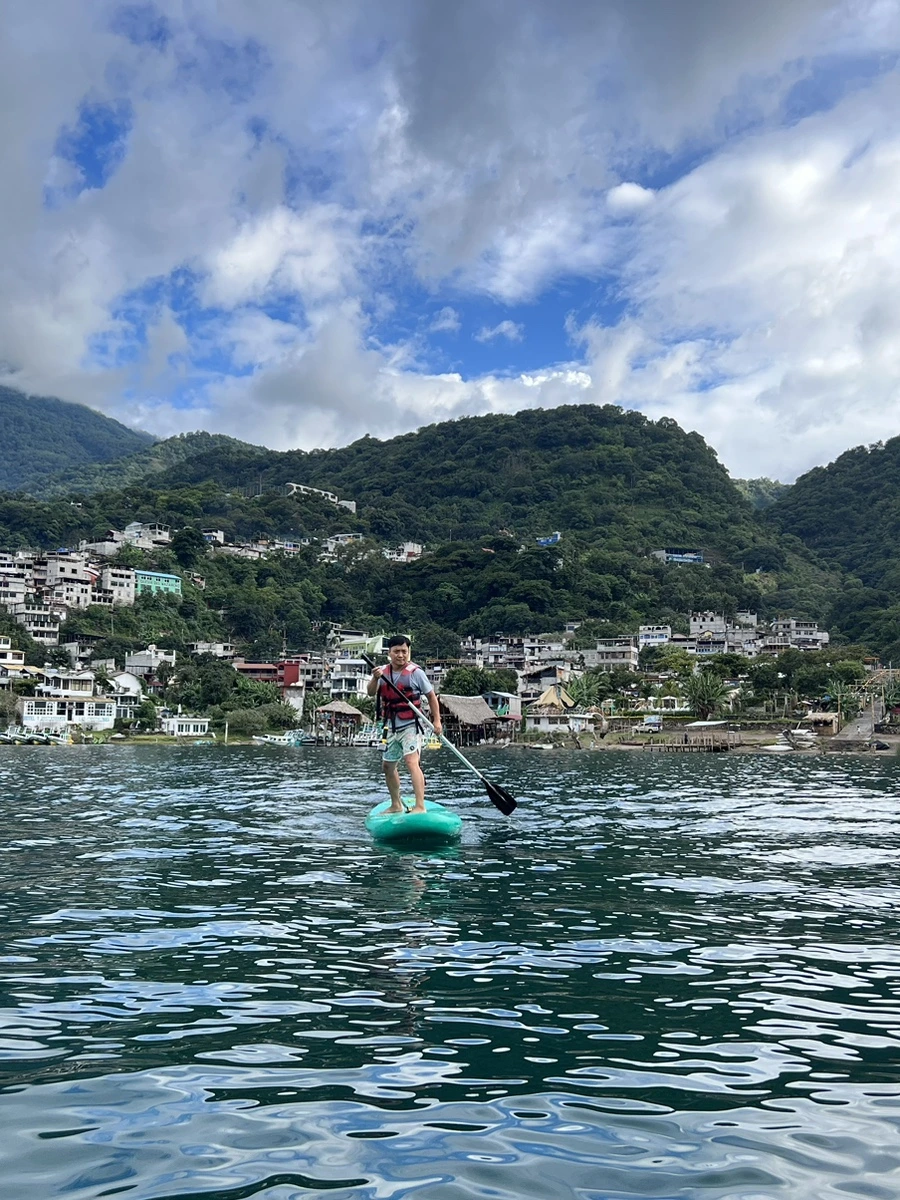 처음 도전하는 패들보드라 처음엔 몇 번 휘청거리며 애를 먹더니, 어느새 균형을 잡고 우뚝 서 있었다.