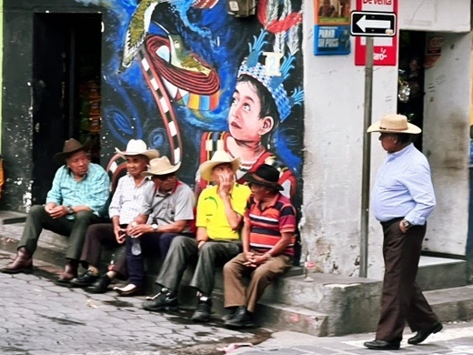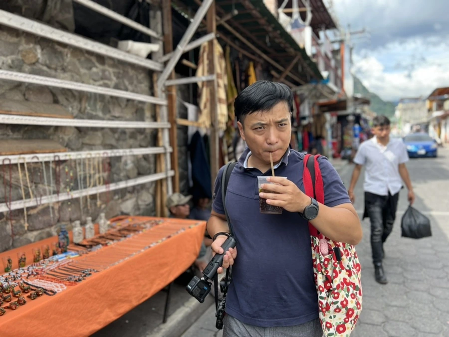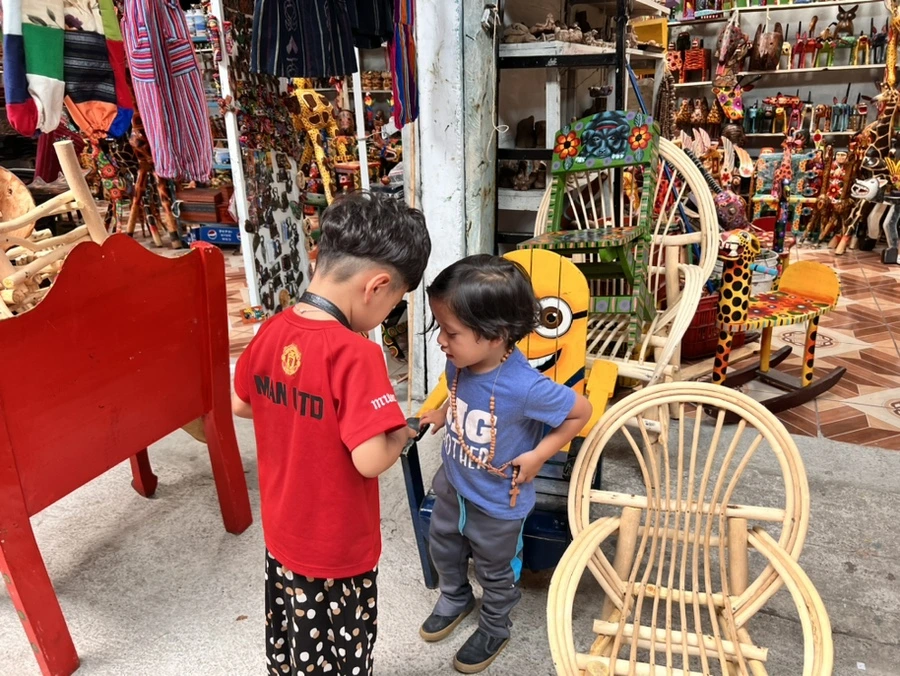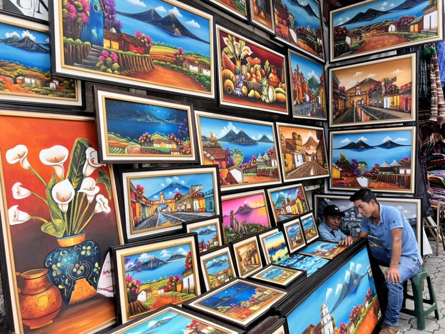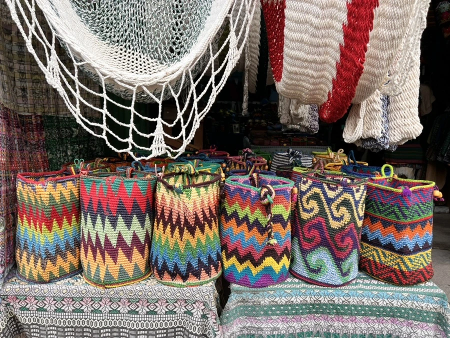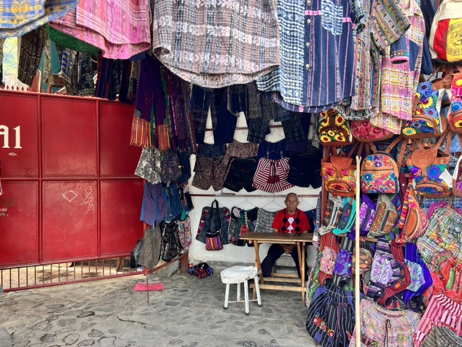 호수에서 카페 로꼬로 향하는 길목엔 알록달록한 기념품 가게와 과테말라 전통 직물들이 매달려 있고,