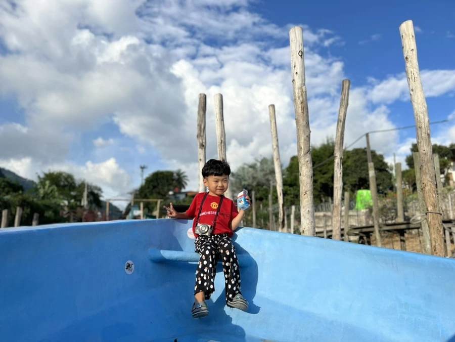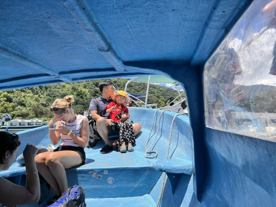 뱃머리에 앉은 남편과 이든이는 호수를 가르는 바람을 맞으며 신나 했고