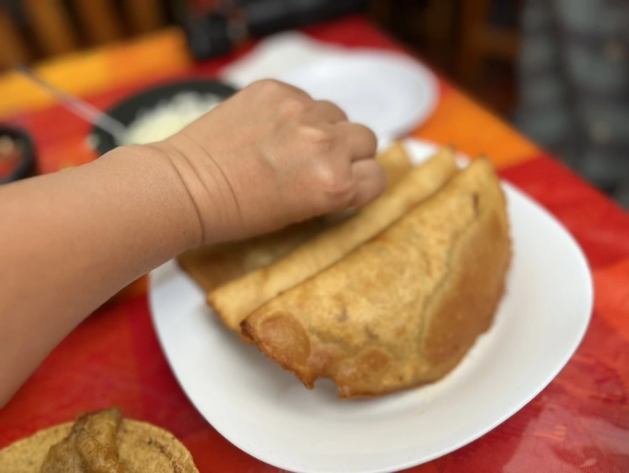 엠빠나다 위에 몰레 뿌리고 양배추채 올리고 살짝 매콤한 소스까지 곁들이니 천상의 맛이었다!